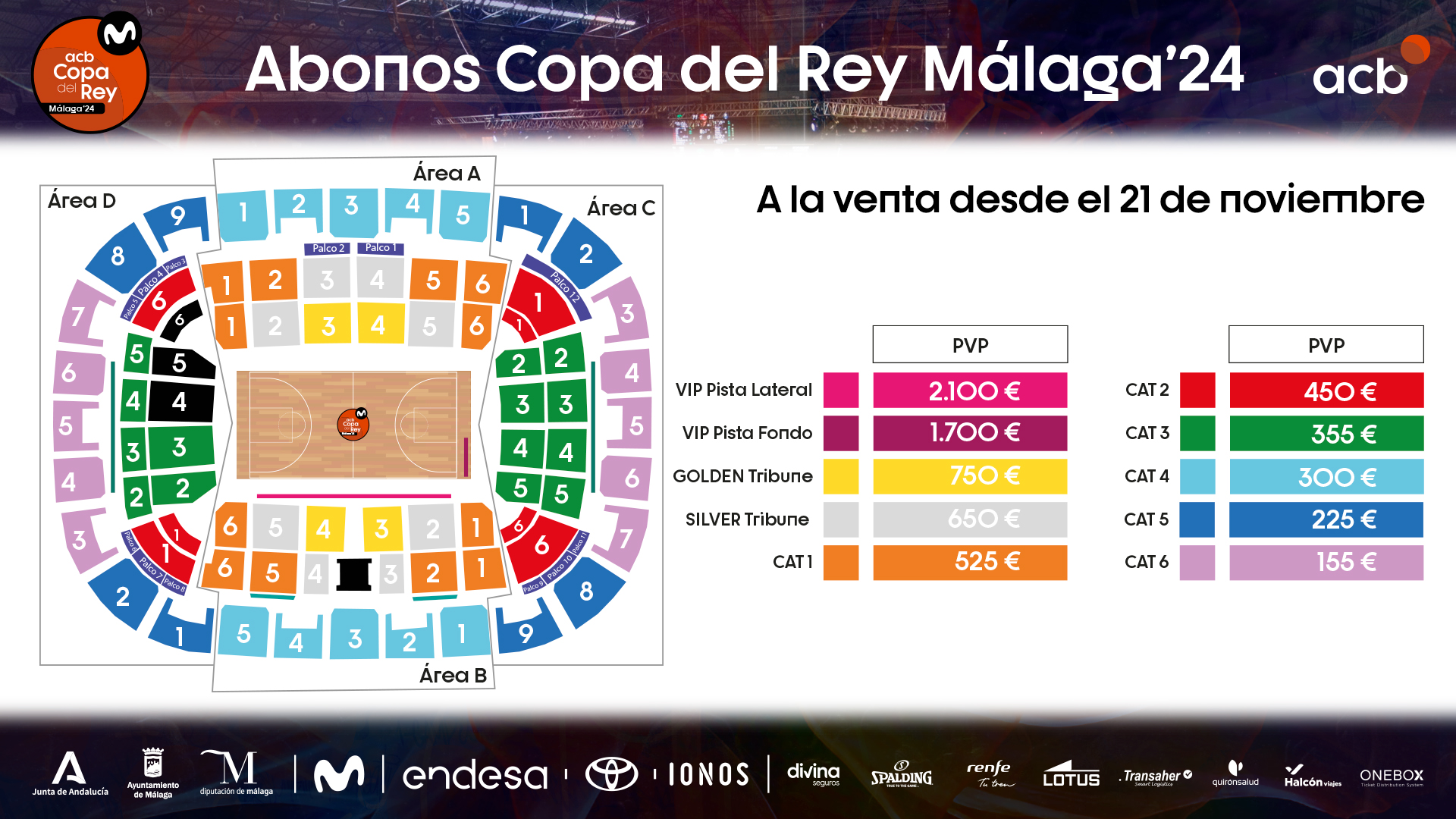 El martes 21 de noviembre arrancó la venta de abonos para disfrutar al completo de la Copa del Rey de Málaga (15 a 18 de febrero de 2024). Se pueden adquirir en https://tickets.acb.com