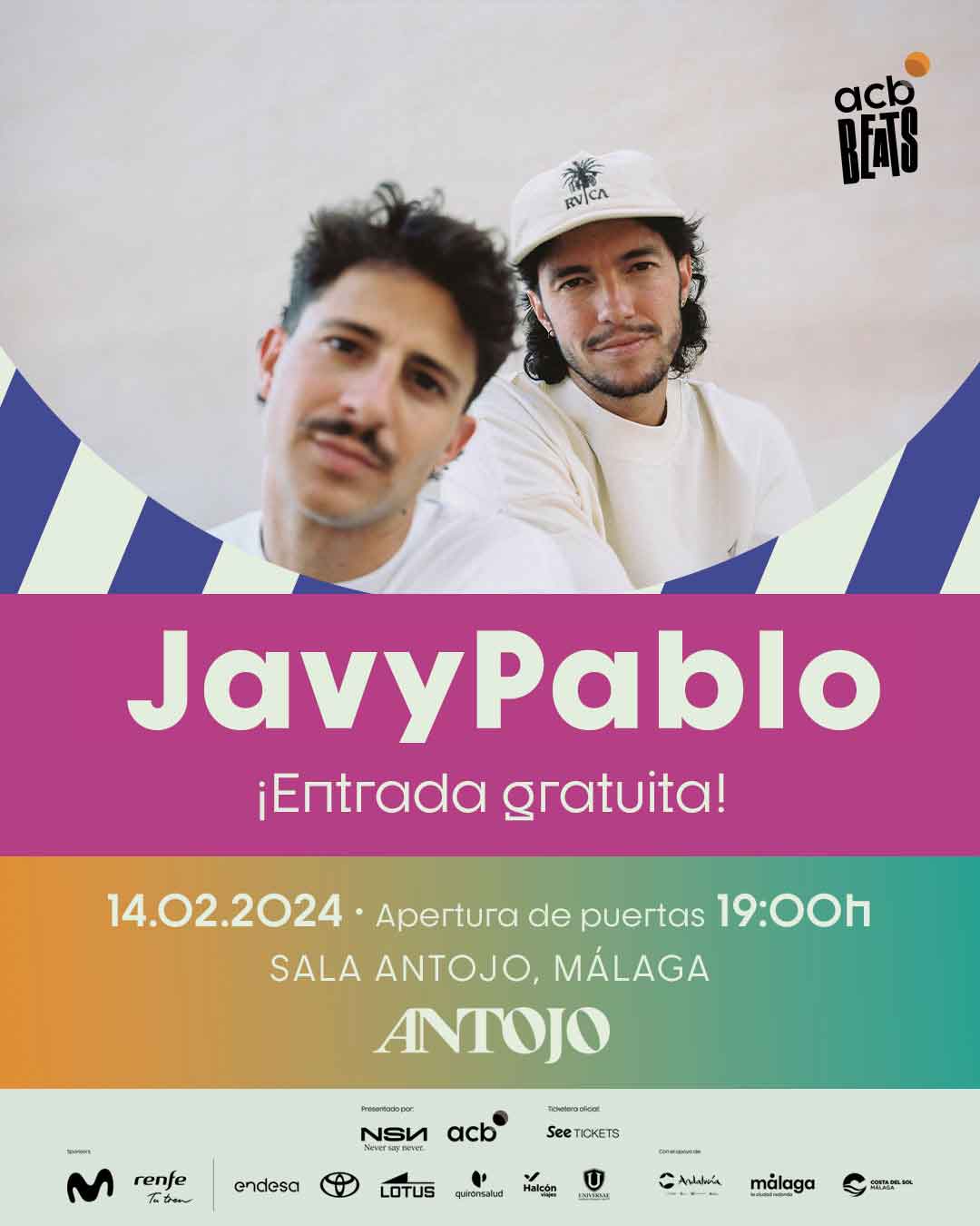 Tras el espectacular 'opening' copero de Lola Índigo del domingo 11 de febrero, acb BEATS anuncia otros dos conciertos en la víspera copera: iPop (martes 13) y Javypablo (miércoles 14) actuarán en la Sala Antojo de Málaga... ¡y la entrada será gratuita hasta completar aforo!