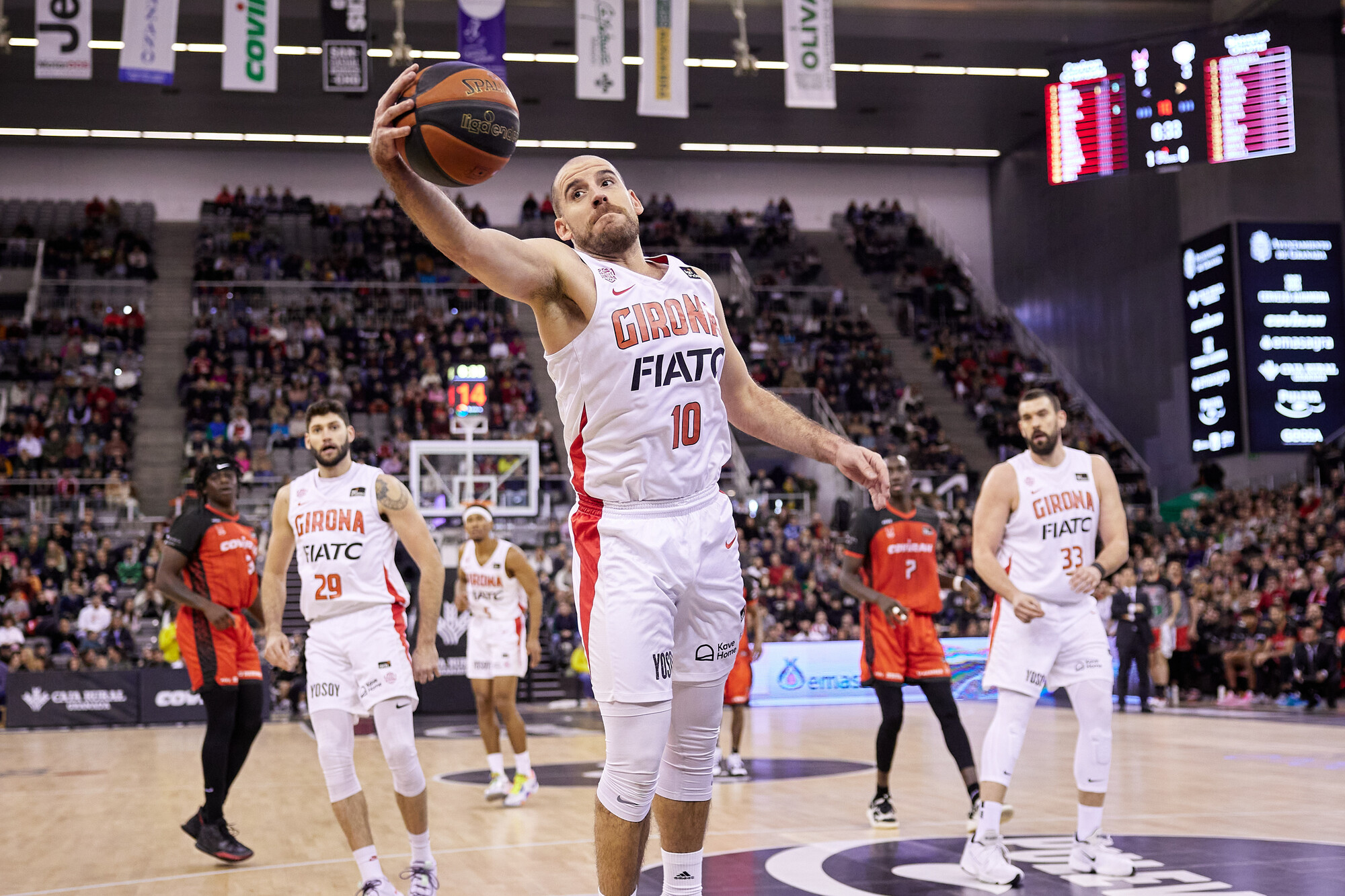 COV 44-38 GIR (DESCANSO). Coviran Granada consigue revertir el encuentro y marcharse a vestuarios con ventaja favorable tras firmar un segundo cuarto para en marcar. La garra nazarí, diferencial y evidenciándose en este lapso tanto en el rebote (10-2), como en los puntos tras pérdida (4-0) y en segunda oportunidad (4-0). Renfroe, gran protagonista con 10 puntos, 3 asistencias y 3 recuperaciones.