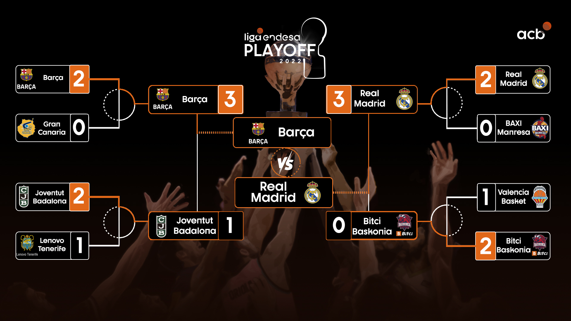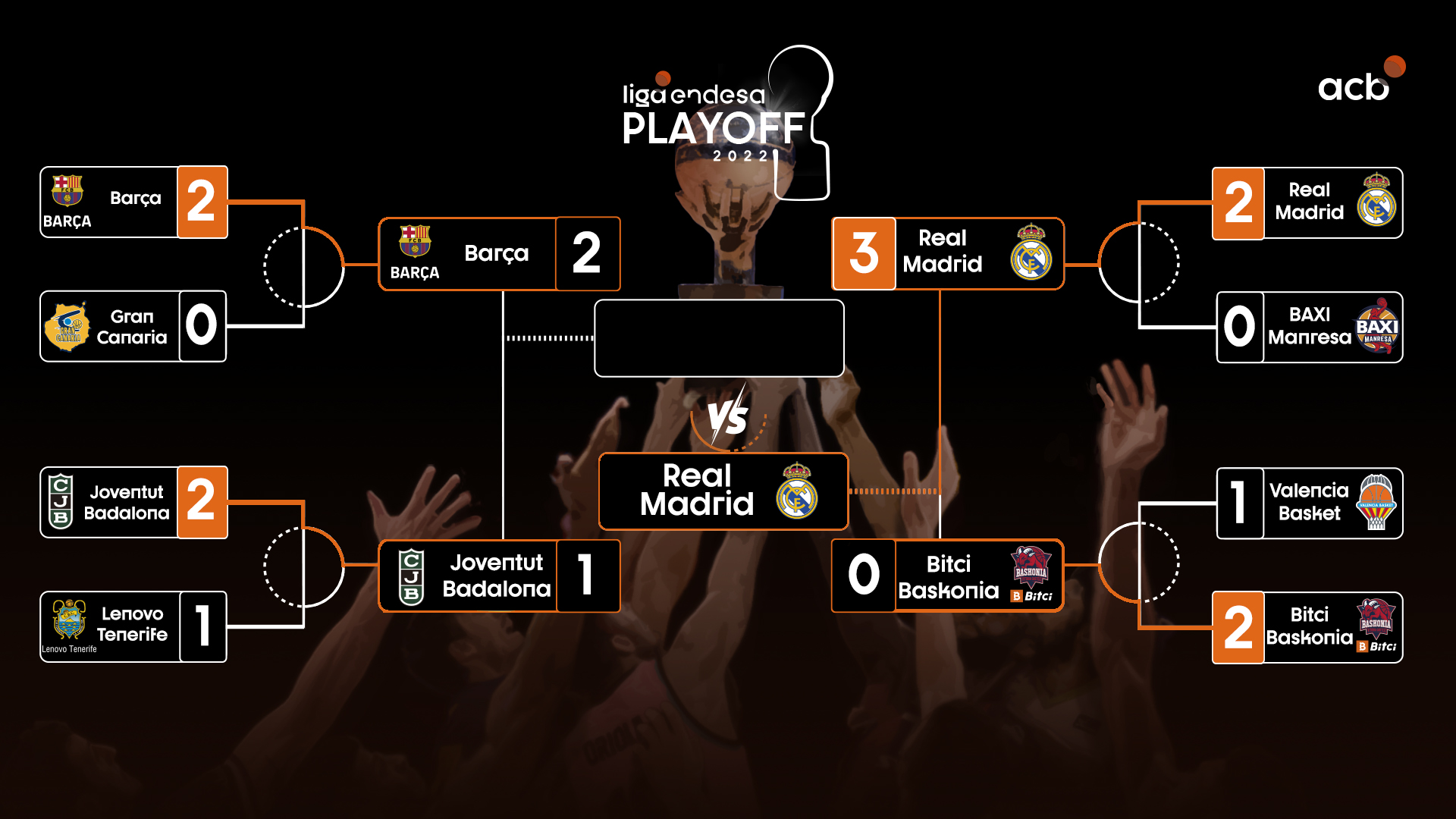 ¿Cómo llevas tu Bracket acb del Playoff? Tan solo un 4% de los usuarios acertaron el 3-0 en la otra semifinal entre Real Madrid y Bitci Baskonia.