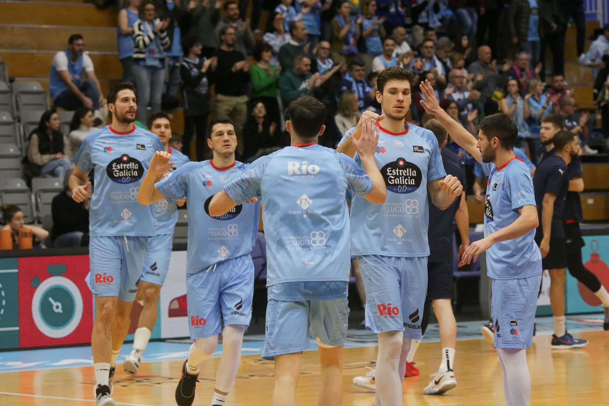 Ambiente espectacular en el Pazo, desde el choque de puños entre los dos capitanes, siguiendo con el cántico 'a capela' del himno gallego y hasta este arranque de partido. Pero para disfrute, el de Distrito acb...