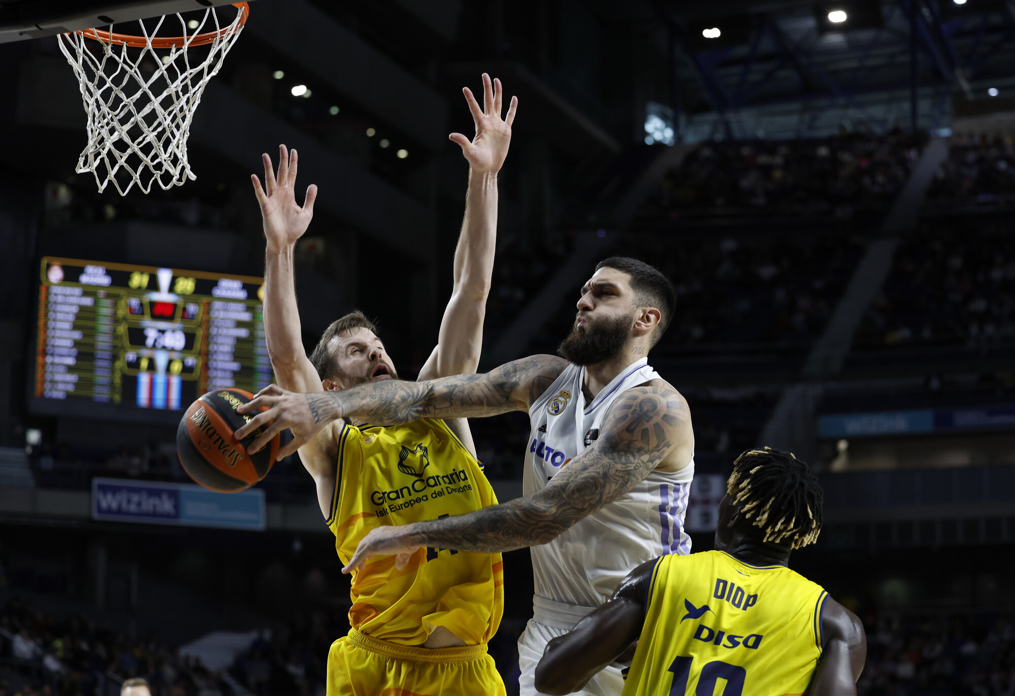 RMB 65-45 GCA (min. 25) Consolida el Real Madrid su ventaja gracias a un Edy Tavares absolutamente dominante. El caboverdiano ya suma 9 puntos y 3 tapones solo en este tercer cuarto. El Gran Canaria tiene tremendos problemas para anotar y su porcentaje en tiros de campo ha bajado al 36%.