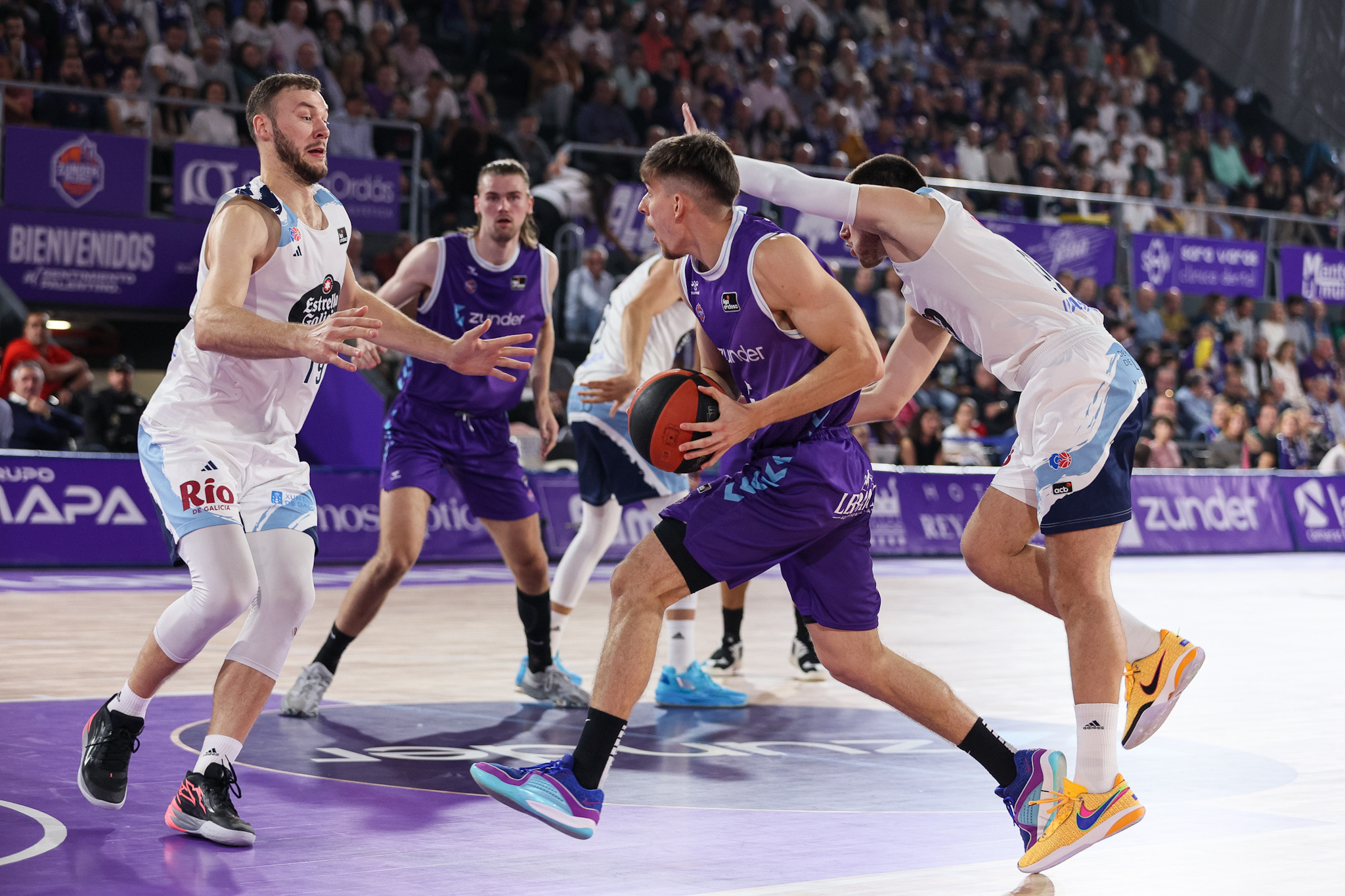 En el Pazo, los dos equipos en puestos de descenso se miden en un partido a cara de perro, a vida muerte: Río Breogán (17º, 7-20) contra Zunder Palencia (18º, 5-22). No hubo color en el primer enfrentamiento entre ambos. Los palentinos consiguieron el primer triunfo de su historia en Liga Endesa (74-59) tras romper el partido en el segundo cuarto con un parcial de 24-8. Hasta seis jugadores palentinos llegaron a los dobles dígitos de valoración.