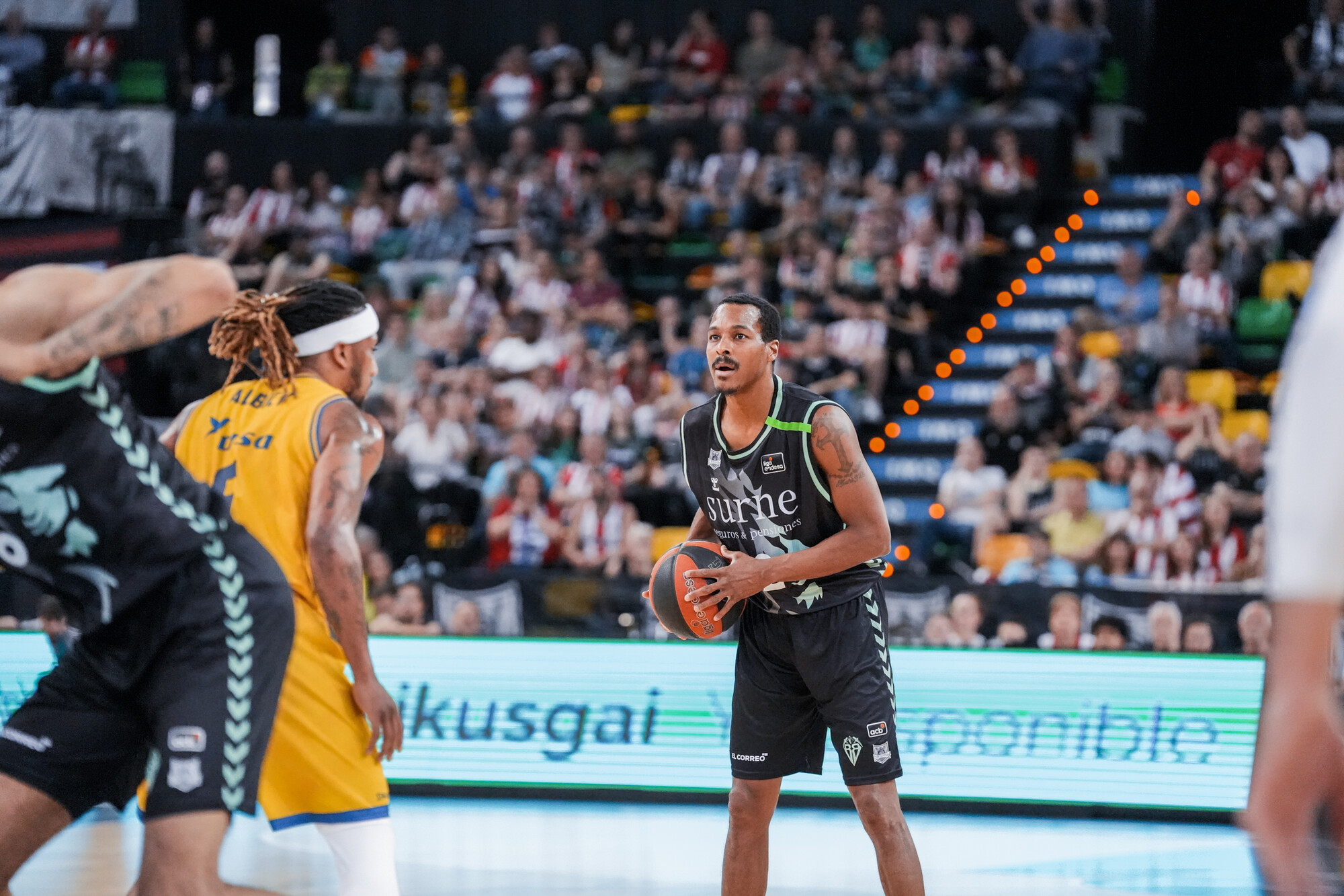 SBB 36-34 DGC (DESCANSO). Después de nueve minutos consecutivos de ventajas para el Dreamland Gran Canaria, Hlinason rompe la igualdad en el electrónico con una canasta de dos. Surne Bilbao, que se marcha a vestuarios por delante, ha estado mucho más acertado desde dentro del perímetro (72% a 38%), pero también más impreciso (9 a 5 en pérdidas). Hornsby se mantiene como máximo anotador con 14 tantos.