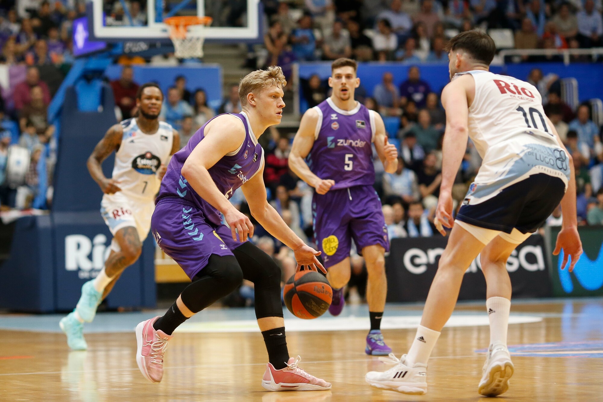 En Lugo, ambiente de auténtica final, de duelo directísimo. Tras la reciente derrota del Monbus Obradoiro, el Río Breogán depende de sí mismo para terminar la jornada fuera del descenso. Eso sí, recibe la vistia de un Zunder Palencia al alza y cuyas opciones de salvación pasan por ganar hoy en el Pazo. Los palentinos ya sumaron en la ida la primera victoria de su trayectoria acb.