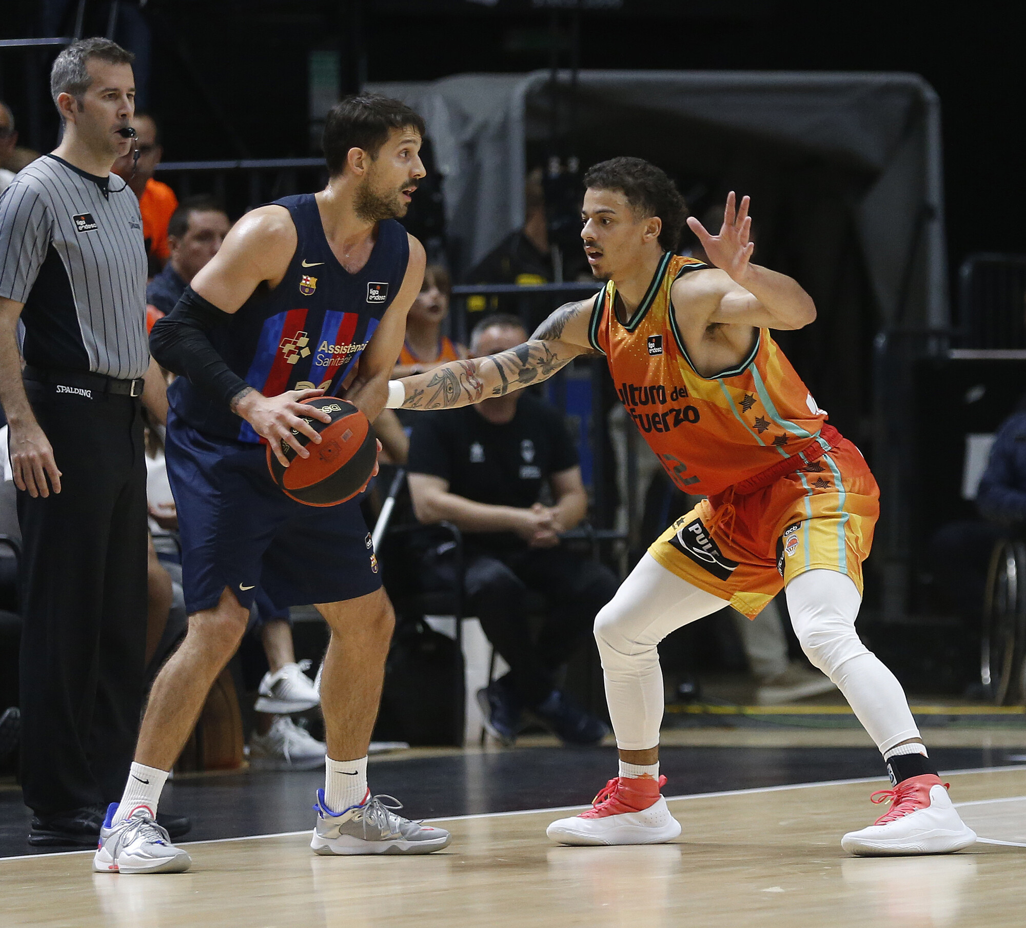 VBC 40-55 BAR (DESCANSO). Exhibición de músculo ofensivo del Barça durante toda la primera parte. De principio a fin. 9 de 14 en triples para el conjunto de Saras Jasikevicius, que trituró con su inspiración en el aro rival cualquier conato de acercamiento taronja.