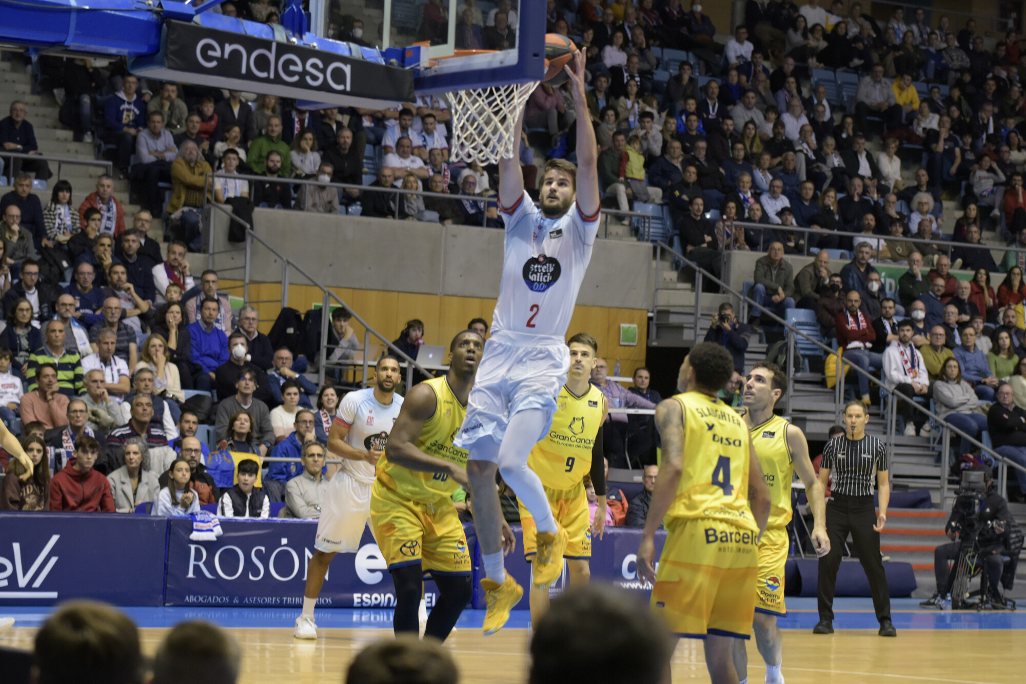 MOB 17-25 GCA (min. 10). Más descompensado el duelo en el Fontes do Sar, aunque no por mucho. Gran Canaria ha encontrado más fluidez en el juego de ataque (8 a 3 en asistencias) en un primer tiempo larguísimo, de más de media hora de duración.