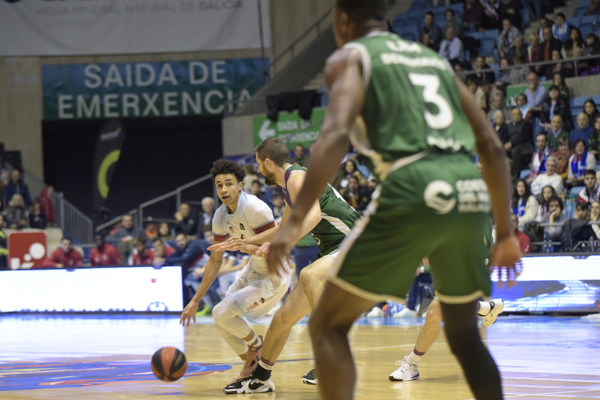 Y en Santiago, sale de inicio en el Fontes do Sar, aunque como rival, el jugador que metió la primera canasta acb de la historia de Monbus Obradoiro, Nihad Djedovic: