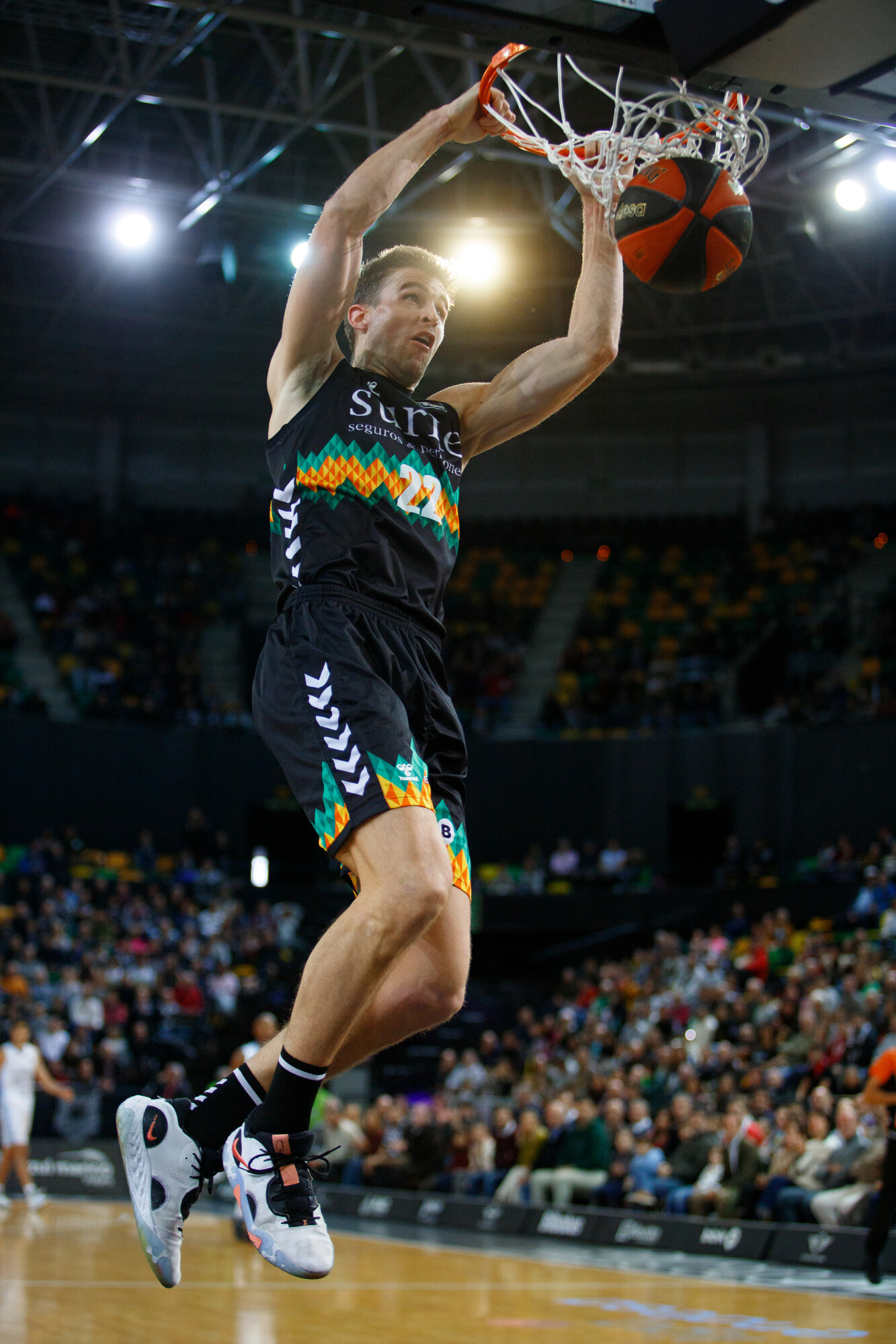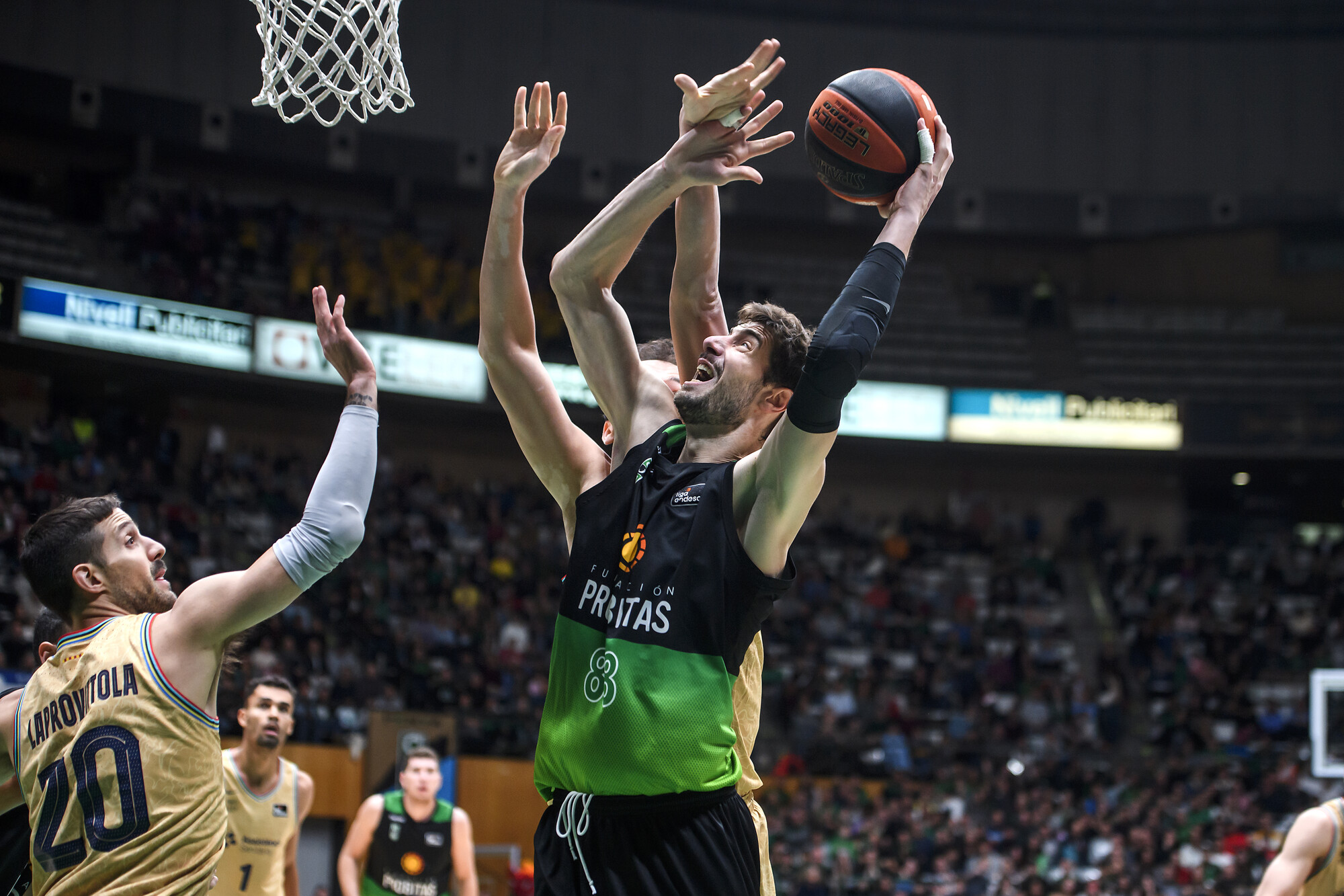 LNT 50-36 VBC (DESCANSO). Los locales resisten los envites del conjunto taronja para llegar a la media parte manteniendo distancias. Jaime Fernández desde fuera (13 puntos, 4 asistencias) y Shermadini desde dentro (13 puntos, 4 rebotes), han abierto hueco en la defensa de Valencia Basket con acciones de mucha calidad como esta: