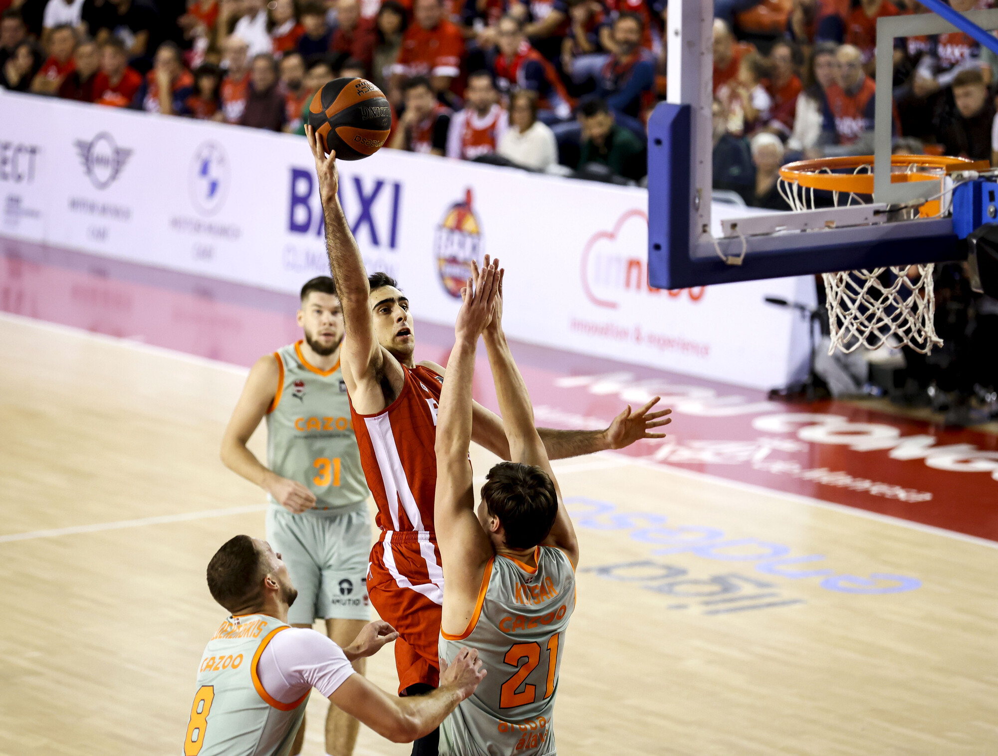 Cazoo Baskonia, justo al contrario que su rival. Empezó como un tiro, pero poco a poco lo fue viendo todo menos claro. Thompson, Howard, Kotsar y Sedekerskis (todos 7 tantos), los que más están dando el do de pecho.