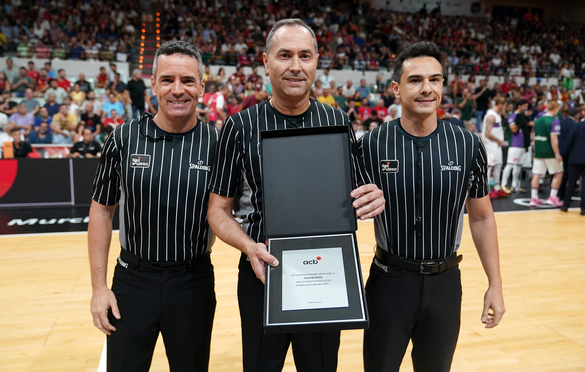 En la previa de la segunda semifinal, la acb ha rendido un especial homenaje a Vicente Bultó, árbitro acb que afronta su último evento en la élite tras 31 temporadas y 851 encuentros dirigidos en la Liga Endesa.
