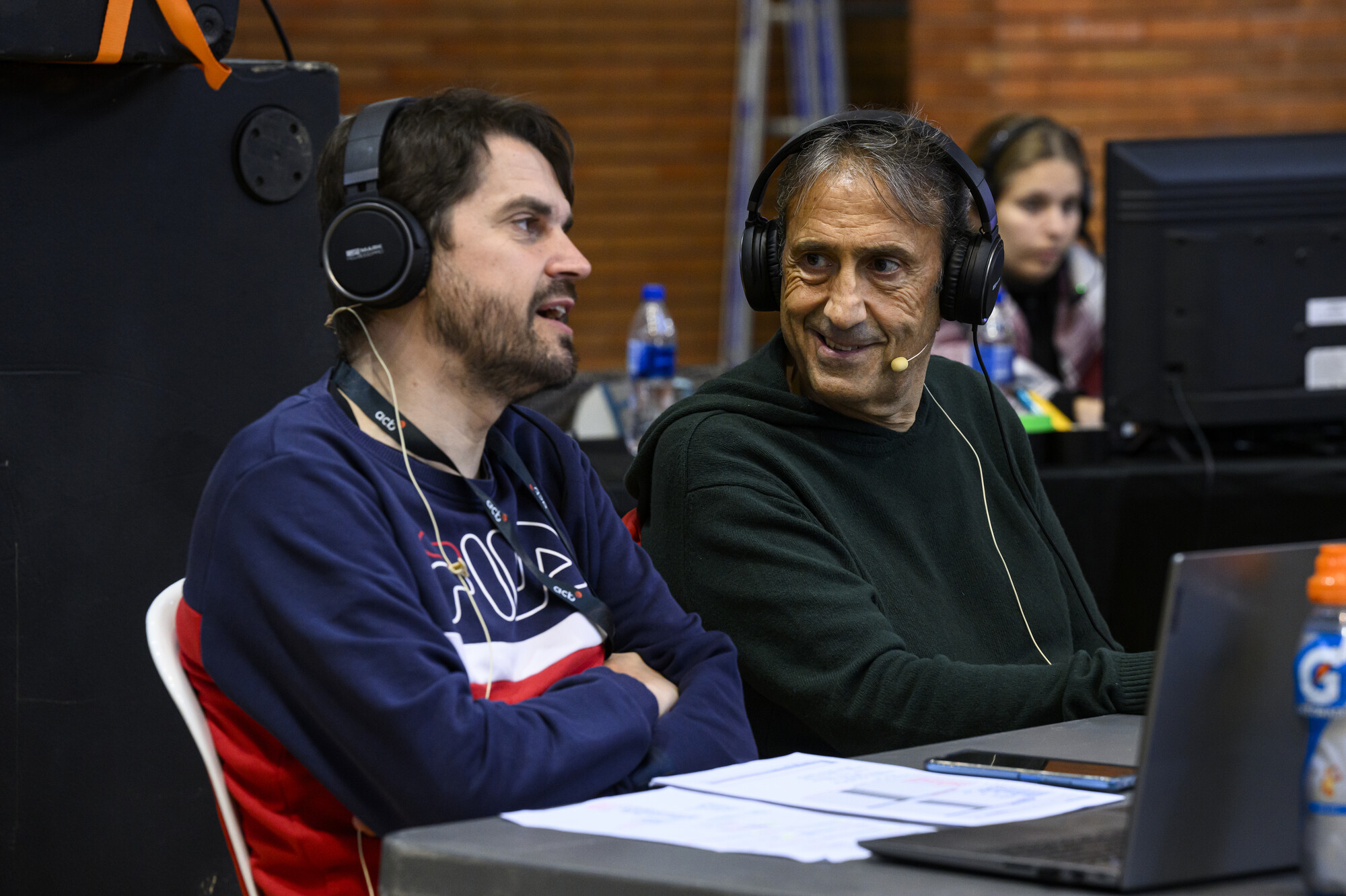 Con toda la fase final en tres días, en lugar de los cinco de la actualidad, las mañanas de viernes y sábado resultaron maratonianas, con media docena de partidos a cuatro periodos de 7 minutos (8:30, 9:45, 11:00, 12:15, 13:30 y 14:45) y un ritmo agotador, sin tregua ni para ir al baño. "Cuando había un tiempo muerto, le pedía a Paco que hablara y así le daba un par de mordiscos al bocadillo", confiesa Mel Otero, al que le faltó pedir colchón y manta en su mesa de locución: "Encadenamos más de 8 horas sin parar viernes y sábado. Encima, el primer día aparecimos en el pabellón a las 7 de la mañana y tuvimos tantos problemas técnicos que nuestro jefe nos pidió estar a las 6 los otros días. Terminábamos, íbamos a la Copa del Rey en San Pablo, tomábamos algo, llegábamos al hotel de Tomares, nos duchábamos y en tres o cuatro horas nos teníamos que ir de nuevo al pabellón".