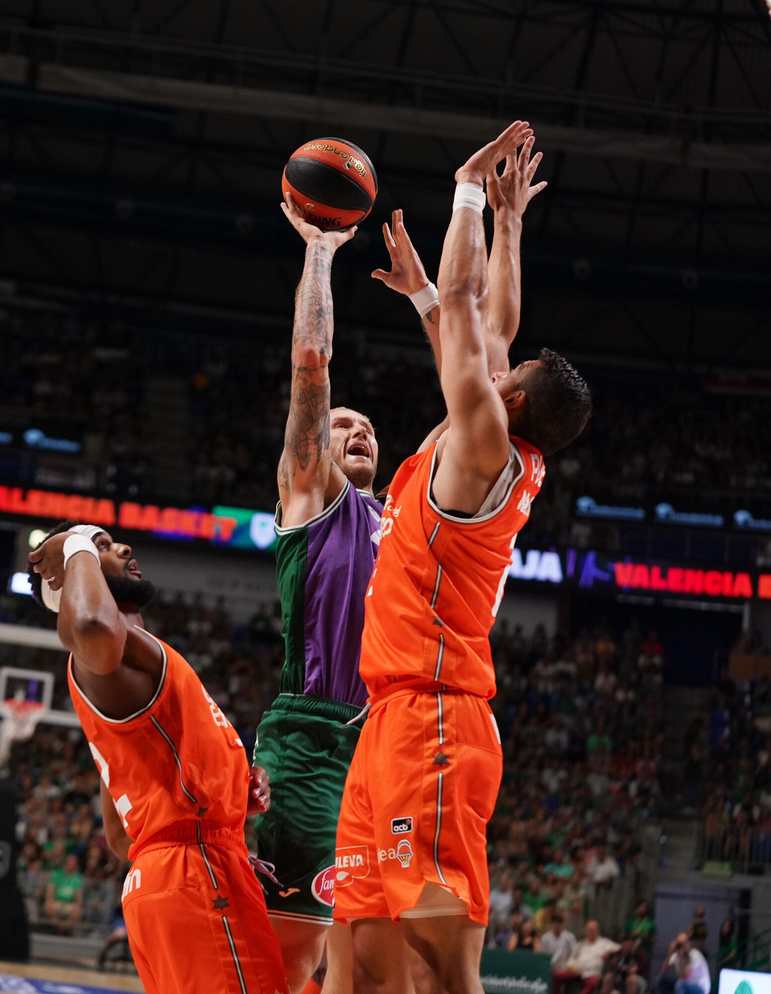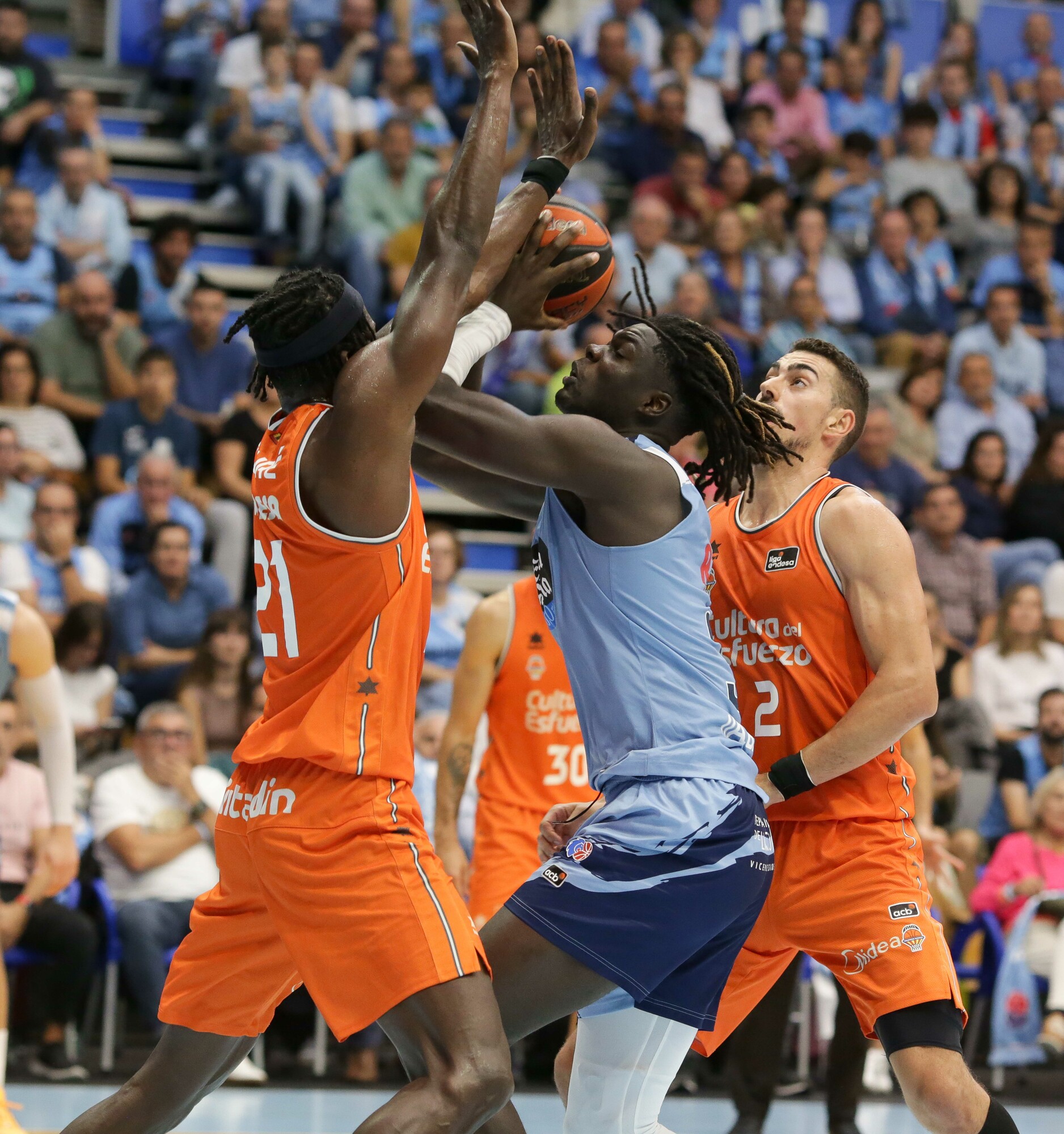 Lo dicen los números pero también las sensaciones. Valencia Basket es un equipo que espesa el juego ofensivo y nubla la vista del adversario, y para muestra de ello la secuencia con la que se cerró el tercer cuarto: líneas altas en defensa, presión al balón y cuando éste sale tocado, los defensores taronja salen disparados a interceptar el pase y correr un contraataque que culmina Josep Puerto.
