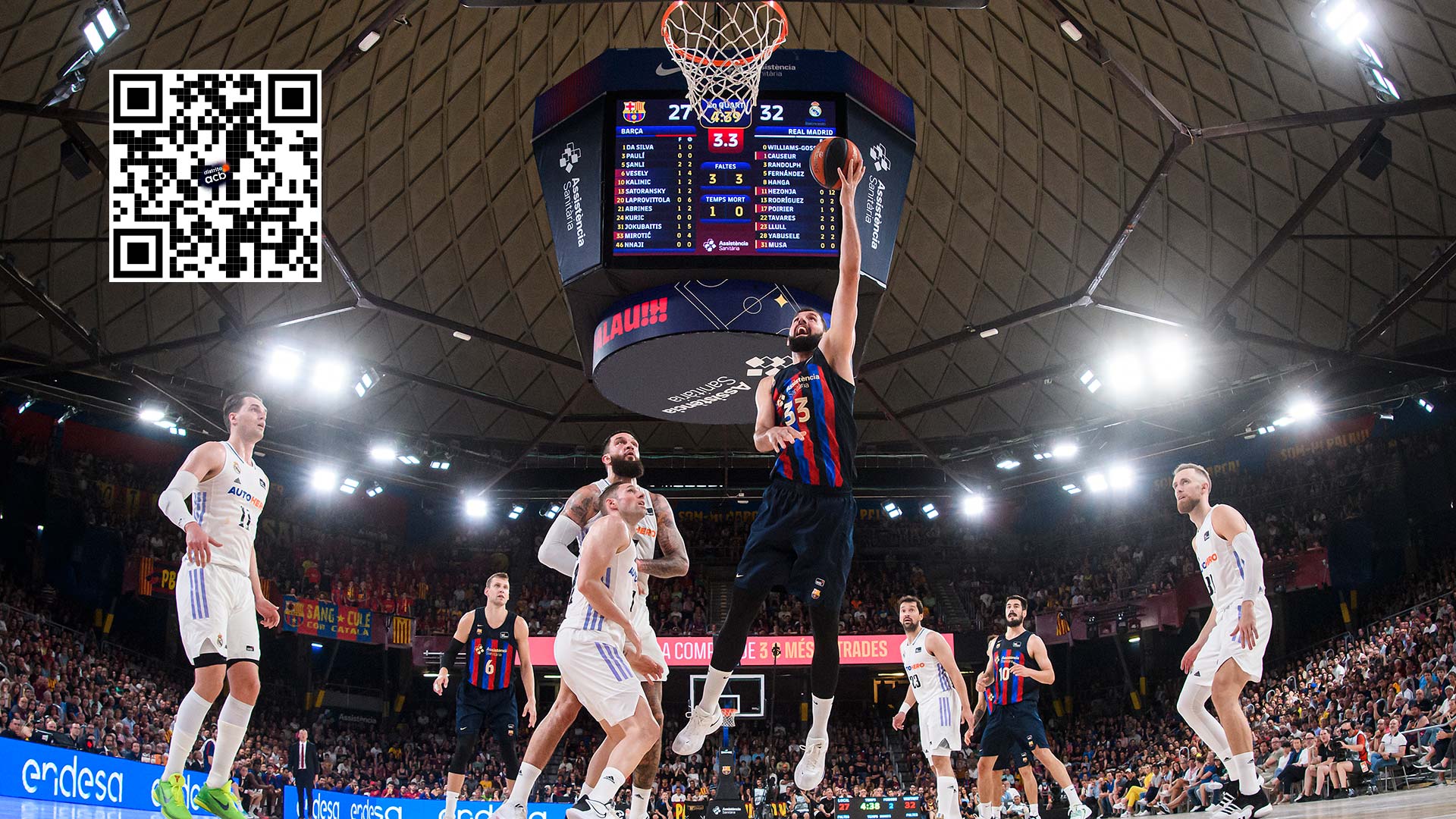 BAR 63-61 RMB (min. 30). Señoras y señores, esto es un auténtico espectáculo. Llegamos a la batalla de los últimos diez minutos de tiempo reglamentario con el partido en el aire. Tras un intercambio constante de golpes, el Barça vuelve a ponerse por delante en una segunda mitad mucho más defensiva, pero igualmente emocionante. Prueba de ello son el 33% local y el 36% visitante en tiros de campo tras la reanudación.
