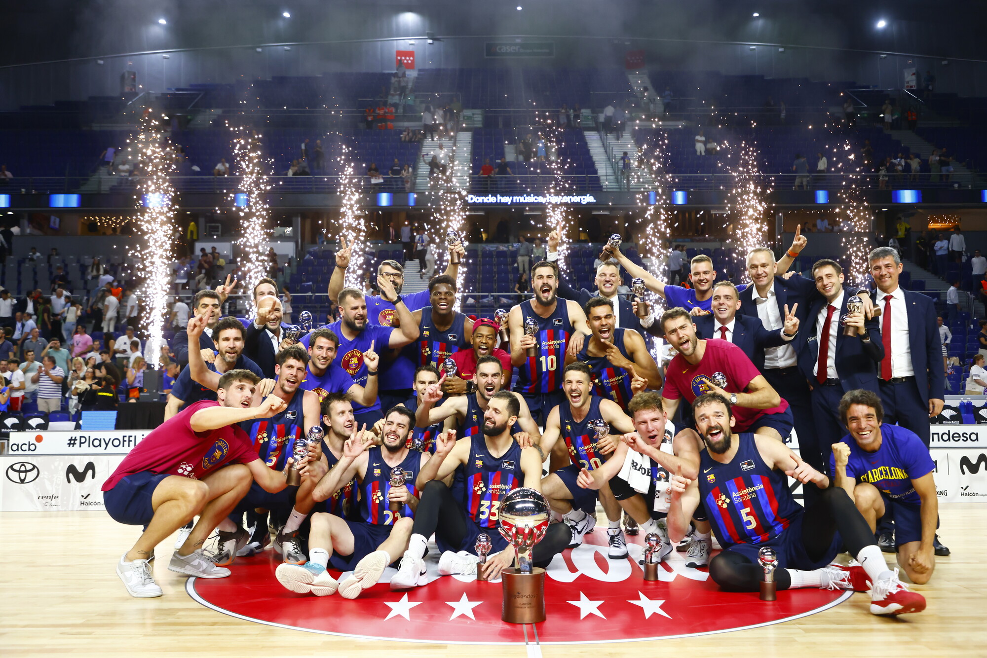 Alegría desbordada en el Barça después de conseguir el título de Liga Endesa 2022-23.