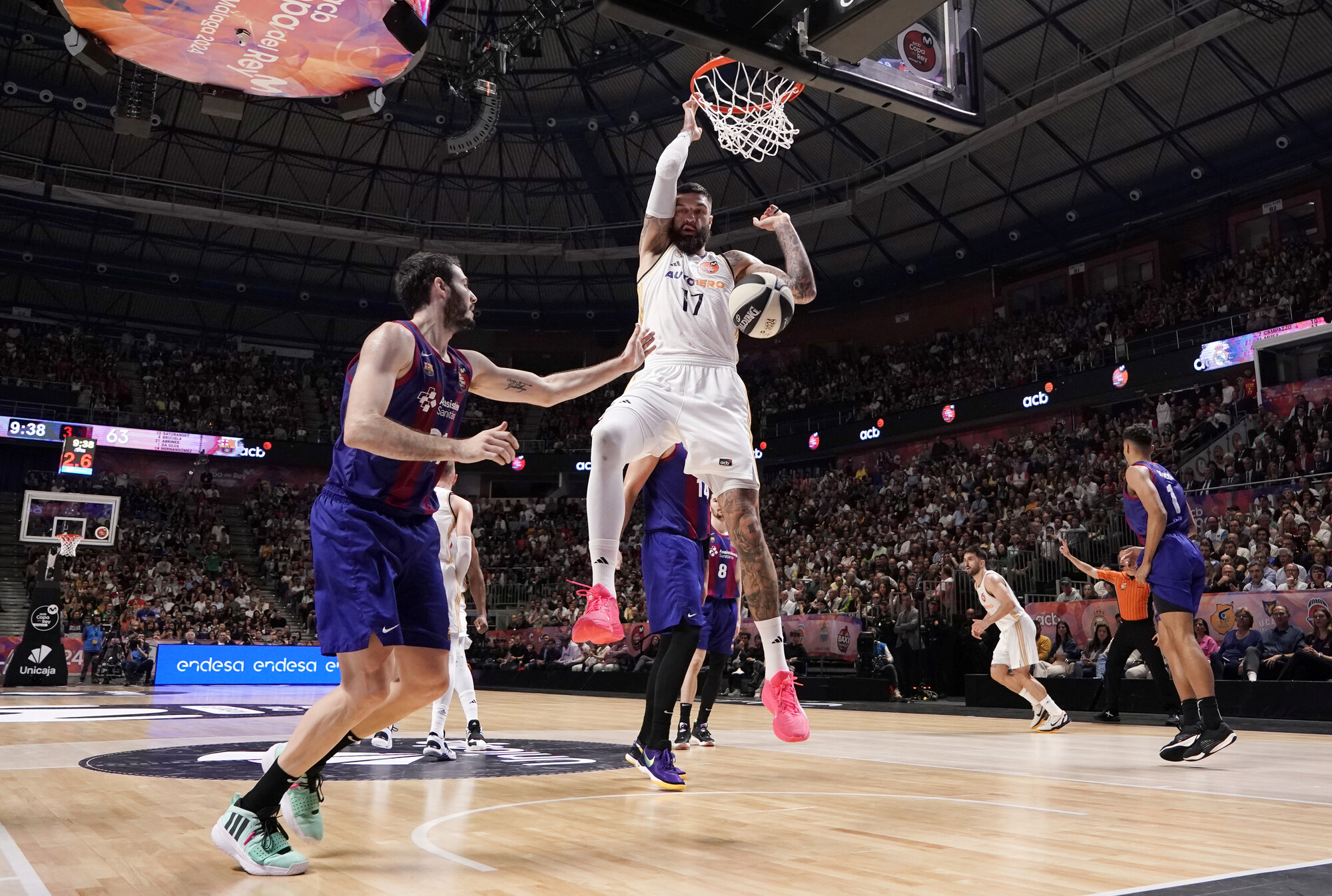 Pero el Barça no estaba dispuesto a rendirse y solo perdía por cuatro puntos a tres minutos y medio del pitido final. En ese momento, un nuevo arreón blanco (86-77, min 37) puso contra las cuerdas al equipo catalán, que ya no pudo recuperarse y acabó hincando la rodilla ante el final arrollador del nuevo campeón.