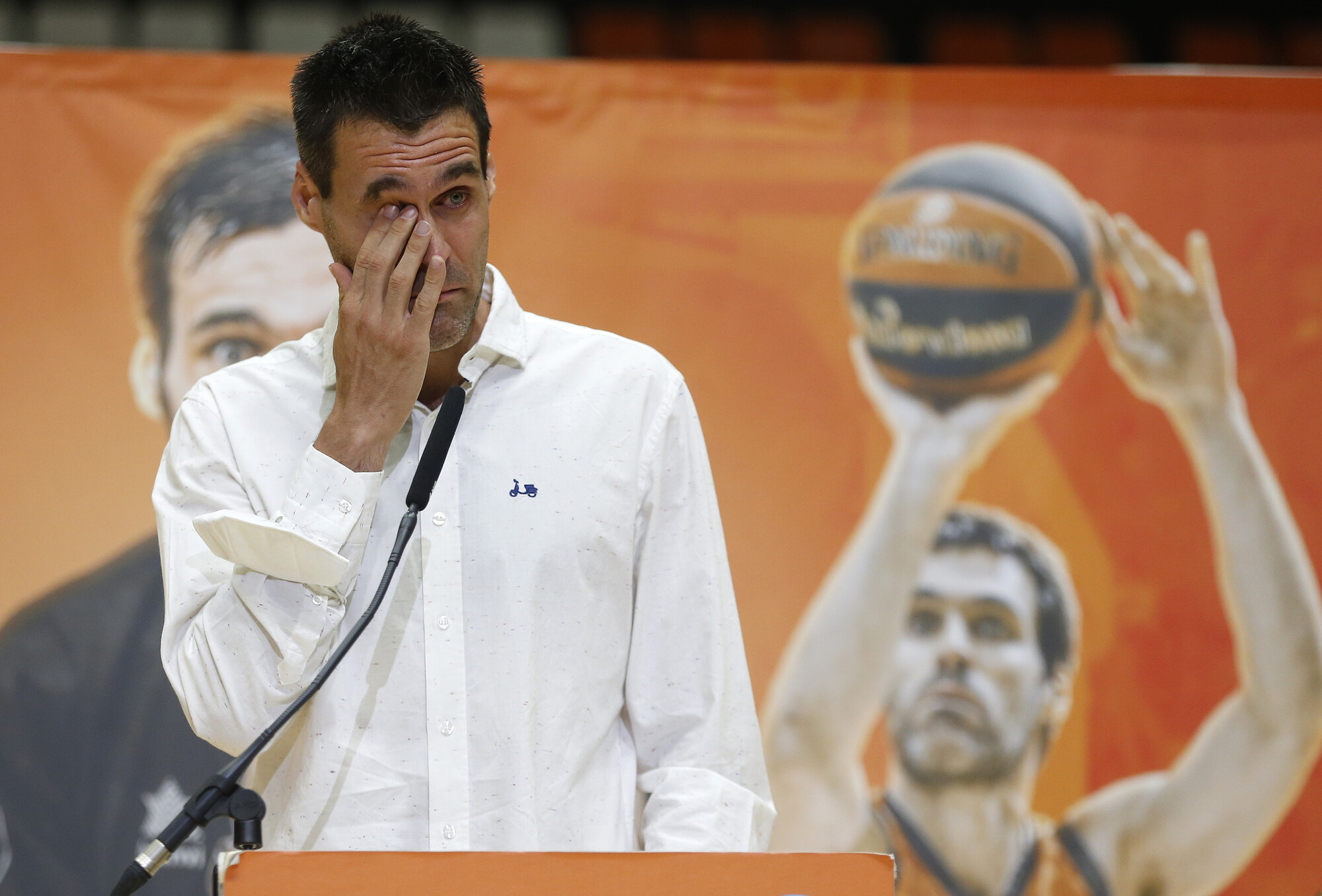 El cántabro ha sido protagonista de un emotivo acto en el que, además de despedirse de la Fonteta, se ha conocido la noticia de que se incorporará al cuerpo técnico de Valencia Basket la próxima temporada