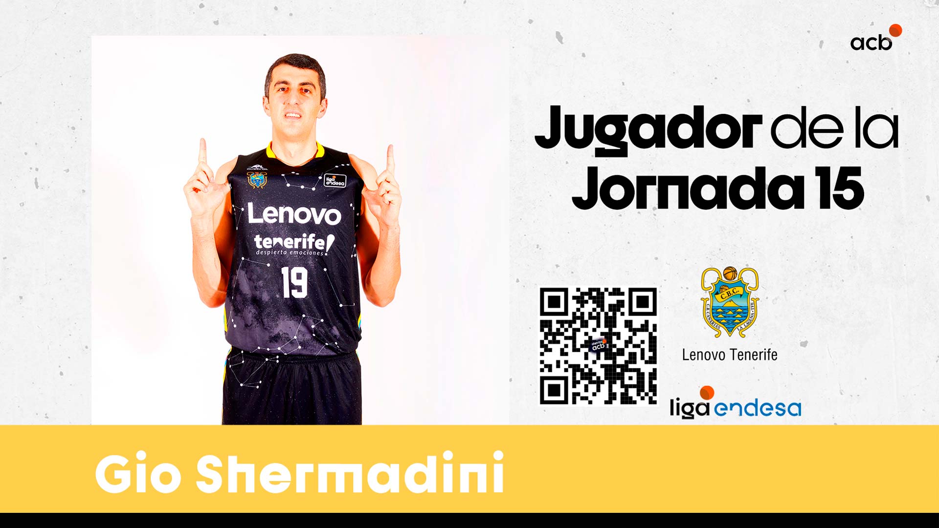 Brillando durante todo el encuentro, Giorgi Shermadini volvió a ser el gran destacado del fin de semana. El pívot del Lenovo Tenerife sumó 36 créditos de valoración, coronándose así como Jugador de la Jornada 15