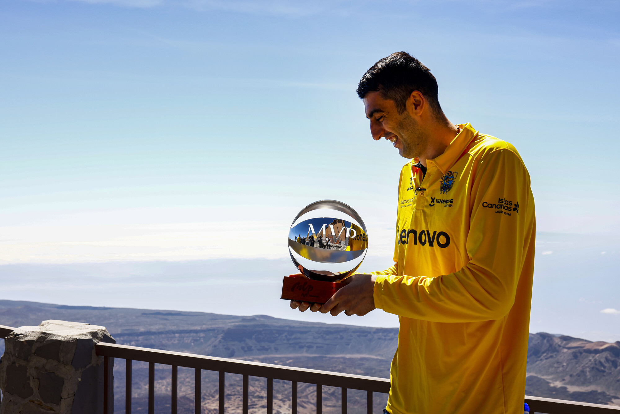 El mejor jugador de la temporada ha recibido su galardón en la cumbre más alta de España, el Teide (3.718 m.), a donde acudió engañado para grabar un spot publicitario y donde fue sorprendido al recibir el trofeo de manos de su compañero Marcelinho Huertas.