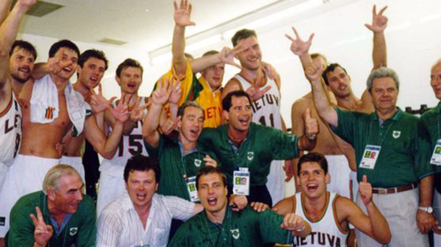 Una Lituania recién nacida, de orgullo por la independencia y tiendas vacías. De equipaciones psicodélicas y el patrocinio de la Ciudad Autónoma de Melilla a unos nombres que hoy resuenan a leyenda: Marciulionis, Kurtinaitis, Homicius... y el faro de nombre Arvydas. Los torneos por España, el preolímpico de Badajoz, la paliza a la antigua URSS. Las instrucciones en inglés, el tándem con el seleccionador Garastas. Y su surrealista desfile olímpico en Barcelona 92 vestido de verde, como si ese color fuese a marcar su destino en el mundo del baloncesto. Y es que en aquellos Juegos Olímpicos el único español en ganar medalla baloncestística fue él, un bronce arrebatado a los rusos para mayor gloria del pueblo lituano, que se echó a la calle para festejar uno de los episodios más curiosos en el periplo de un Imbroda que, lejos de apuntarse a la celebración, ya solo tenía la cabeza enfocada en la nueva temporada. La temporada del cambio.