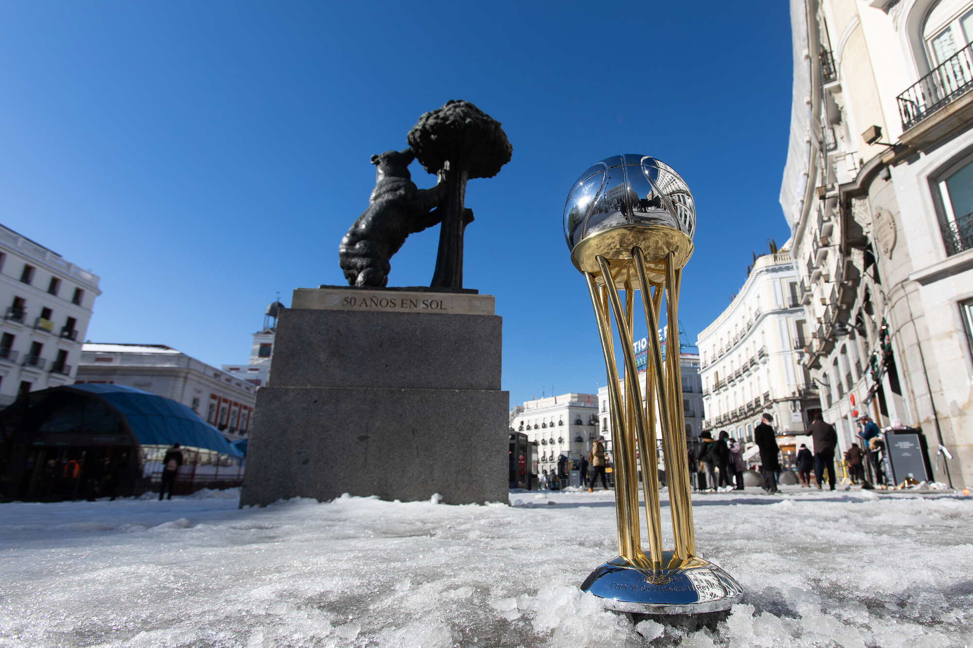 Tras una nevada que ha dejado estampas inusuales en Madrid, la ciudad ya cuentas las fechas hasta la disputa de la próxima Copa del Rey (del 11 al 14 de febrero). Y mientras llega el torneo, la copa se da una vuelta por la ciudad para dejarnos imágenes espectaculares