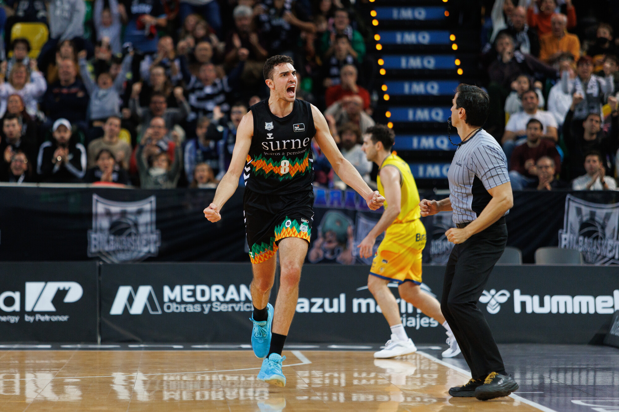 SBB 10-15 BRE (min. 8). Surne Bilbao golpea primero con un parcial de 8-2, pero, en un visto y no viste, responde Río Breogán con un 2-13 para tomar la iniciativa. Sergi Quintela, clave en esta reacción con dos canastas y una recuperación de forma consecutiva.