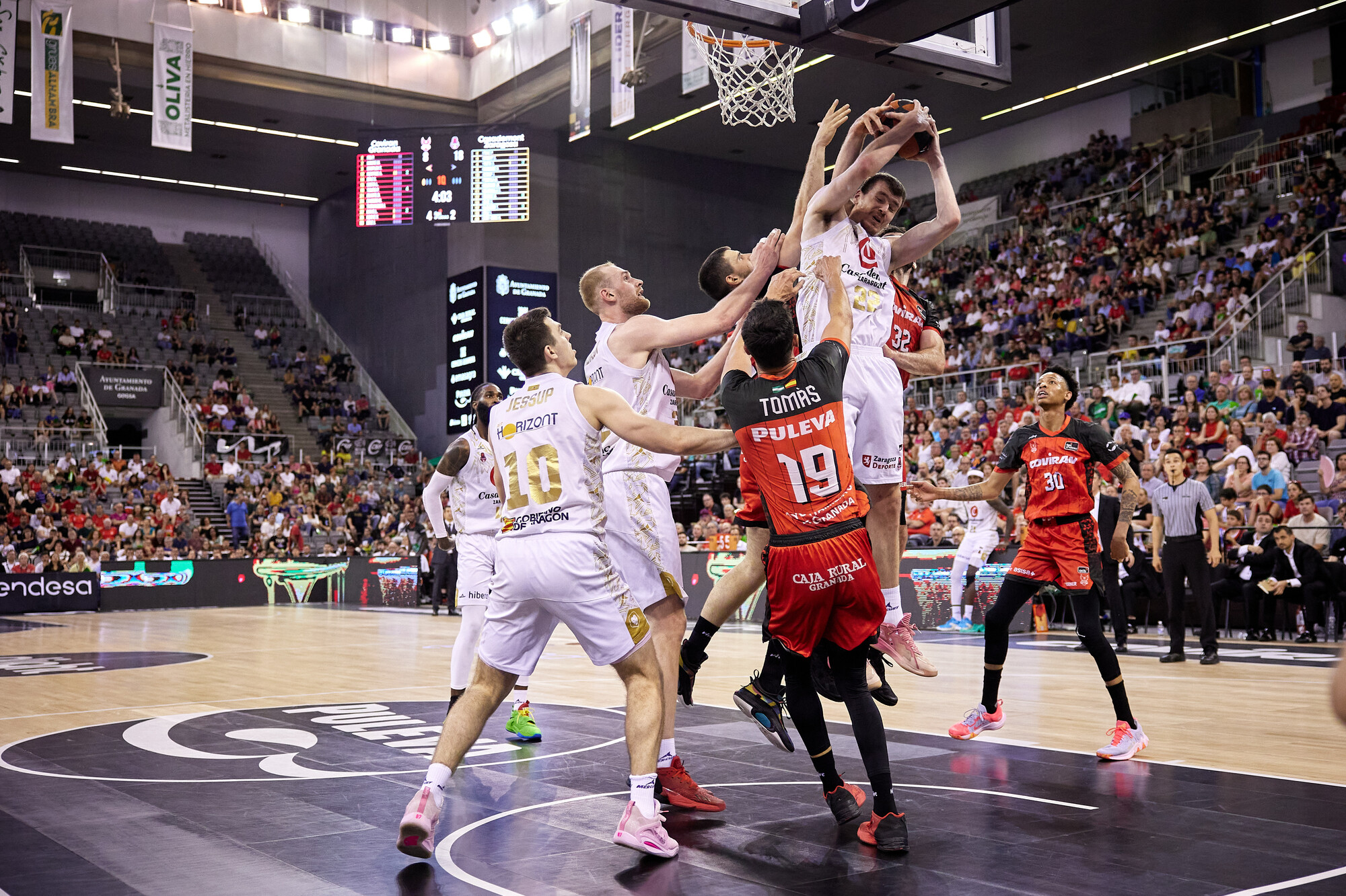COV 48-54 CAZ (min. 28). 7 puntos en siete minutos de Jessup vuelven a dar margen a Casademont Zaragoza en un encuentro que promete dar paso a un final de infarto. Recordemos, Coviran Granada debe ganar para evitar quedarse a dos triunfos de la permanencia. Una derrota nazarí confirmaría la salvación de Bàsquet Girona y BAXI Manresa.