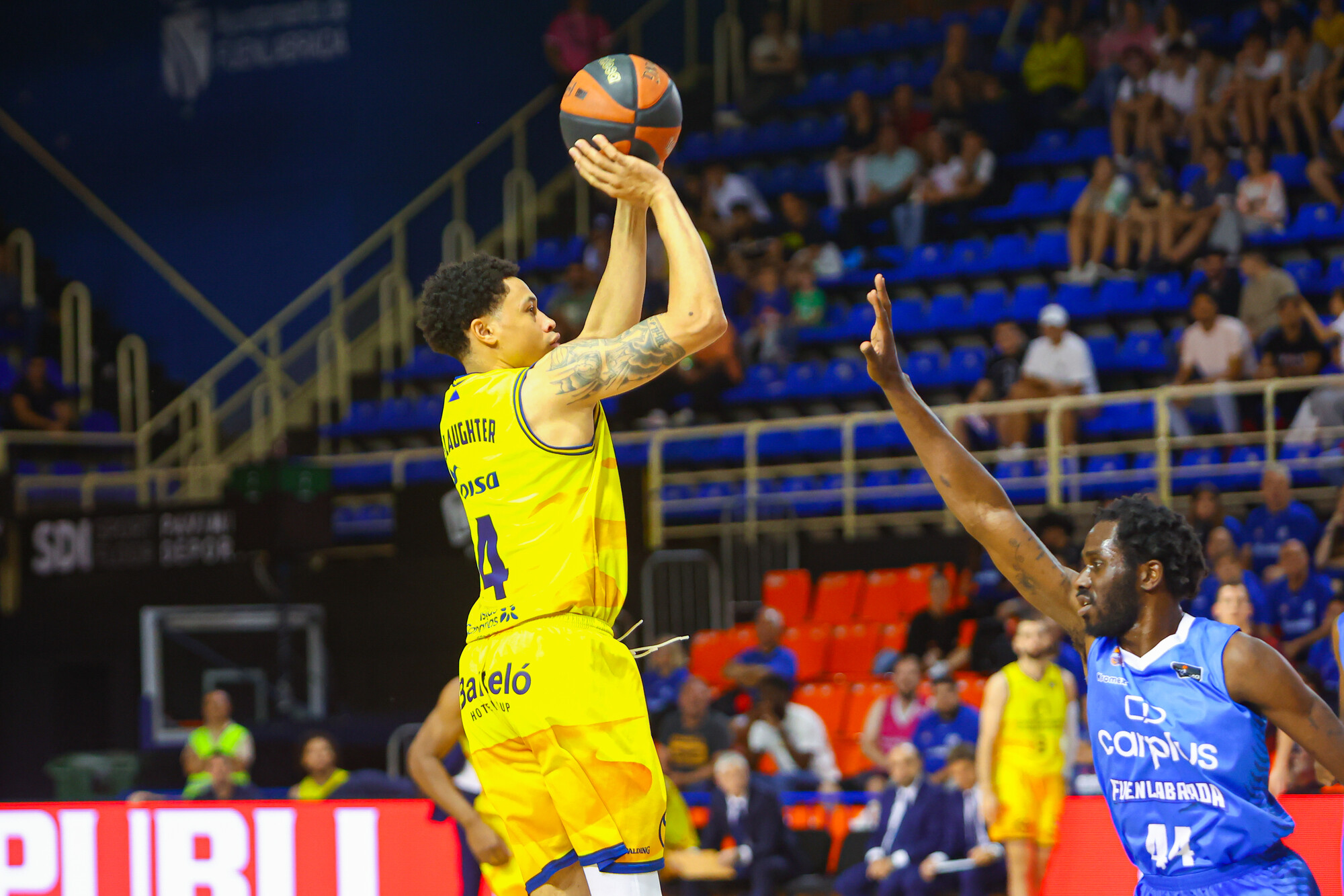 FUE 33-38 GCA (min. 15) Mucha igualdad en el Fernando Martín, con el Gran Canaria por delante tras tres tiros libres de AJ Slaughter. El equipo canario busca distanciar al Joventut y proteger su sexta plaza en la clasificación.