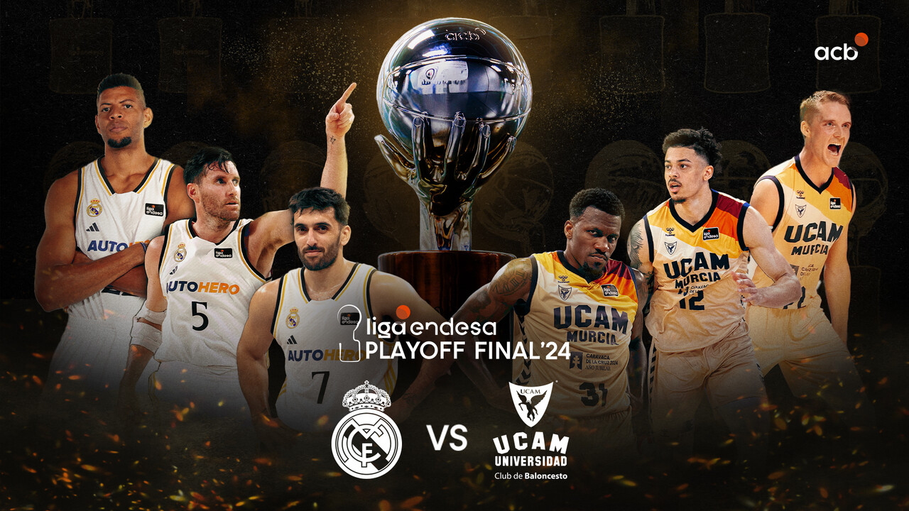 Real Madrid y UCAM Murcia se medirán por primera vez en una eliminatoria por el título de campeón de Liga Endesa, y segunda vez en postemporada tras los cuartos del 2016. El Playoff Final 2024 empezará este sábado, 8 de junio, y se extenderá hasta el 16 como máximo.