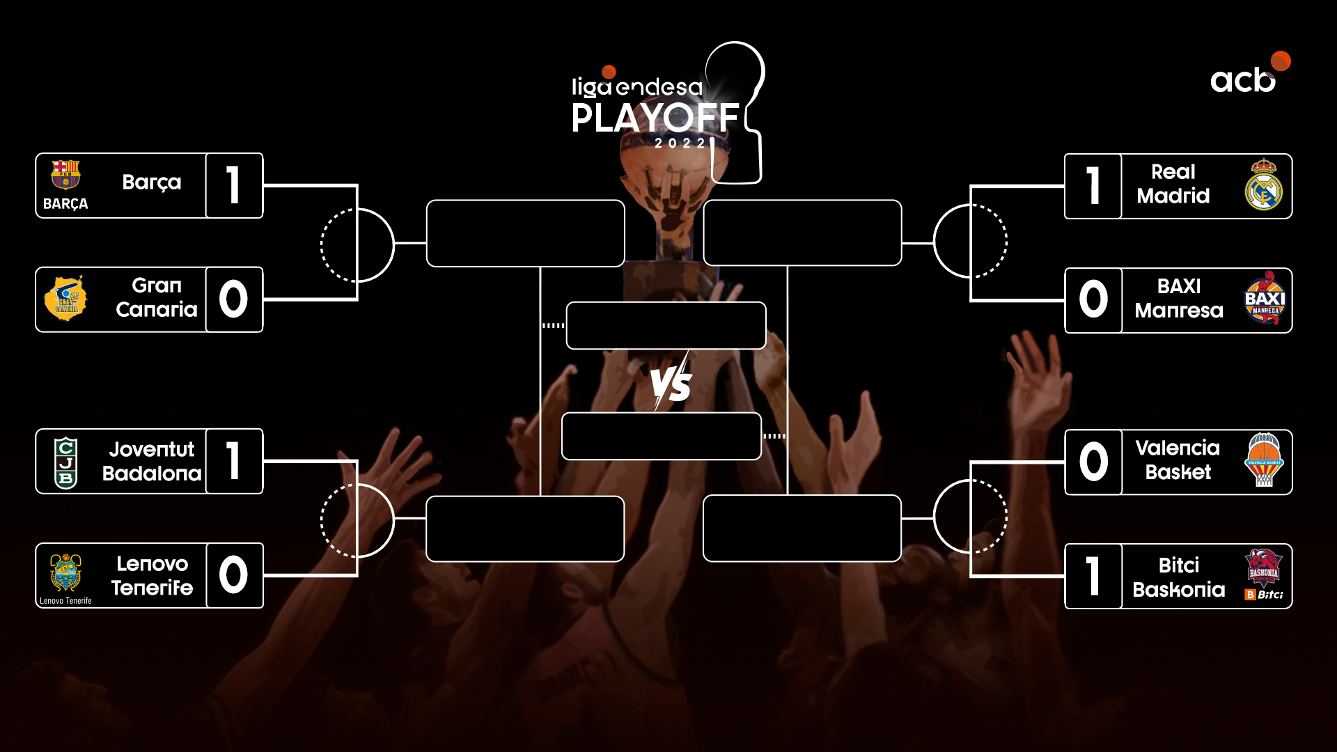 Por otro lado, las series de los 3º, 4º, 5º y 6º clasificados deberán resolverse en el tercer y definitivo partido. El Valencia-Bitci Baskonia se jugará mañana mismo a las 21h, y cerrará el Joventut-Lenovo Tenerife cerrará la ronda, pase lo que pase, el martes, 31 de mayo, a las 21h.