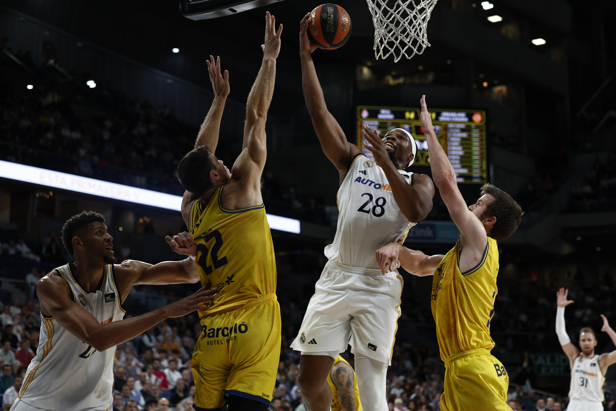 BAR 68-66 LNT (min. 29). Partido a cara de perro donde los haya. Lenovo Tenerife había conseguido su primera ventaja del encuentro y amenzaba en marcharse en el electrónico, pero responde el Barça con el paso al frente de: Hernangómez (4 puntos y 5 rebotes en tres minutos), quién no había salido a pista hasta el tercer periodo, y Abrines (16 puntos). Tiempo muerto tinerfeño.