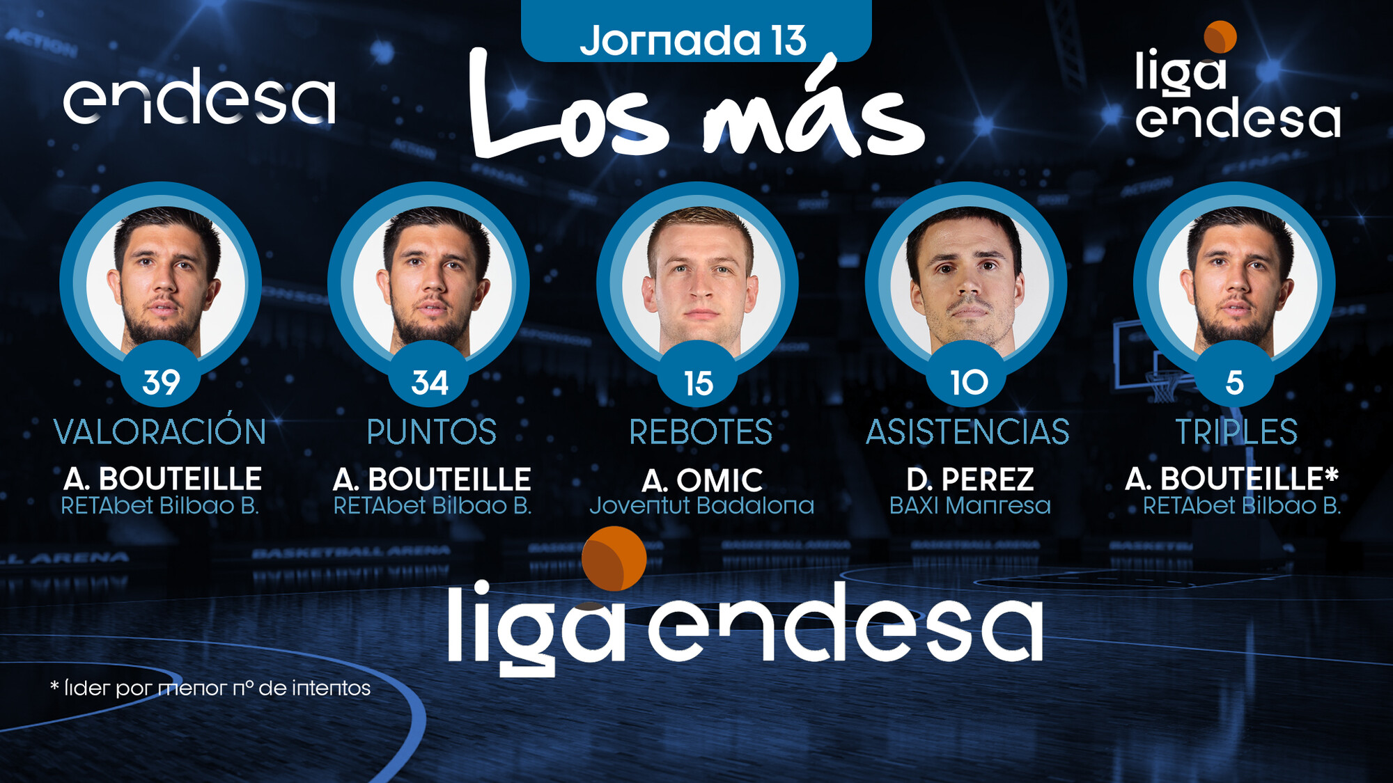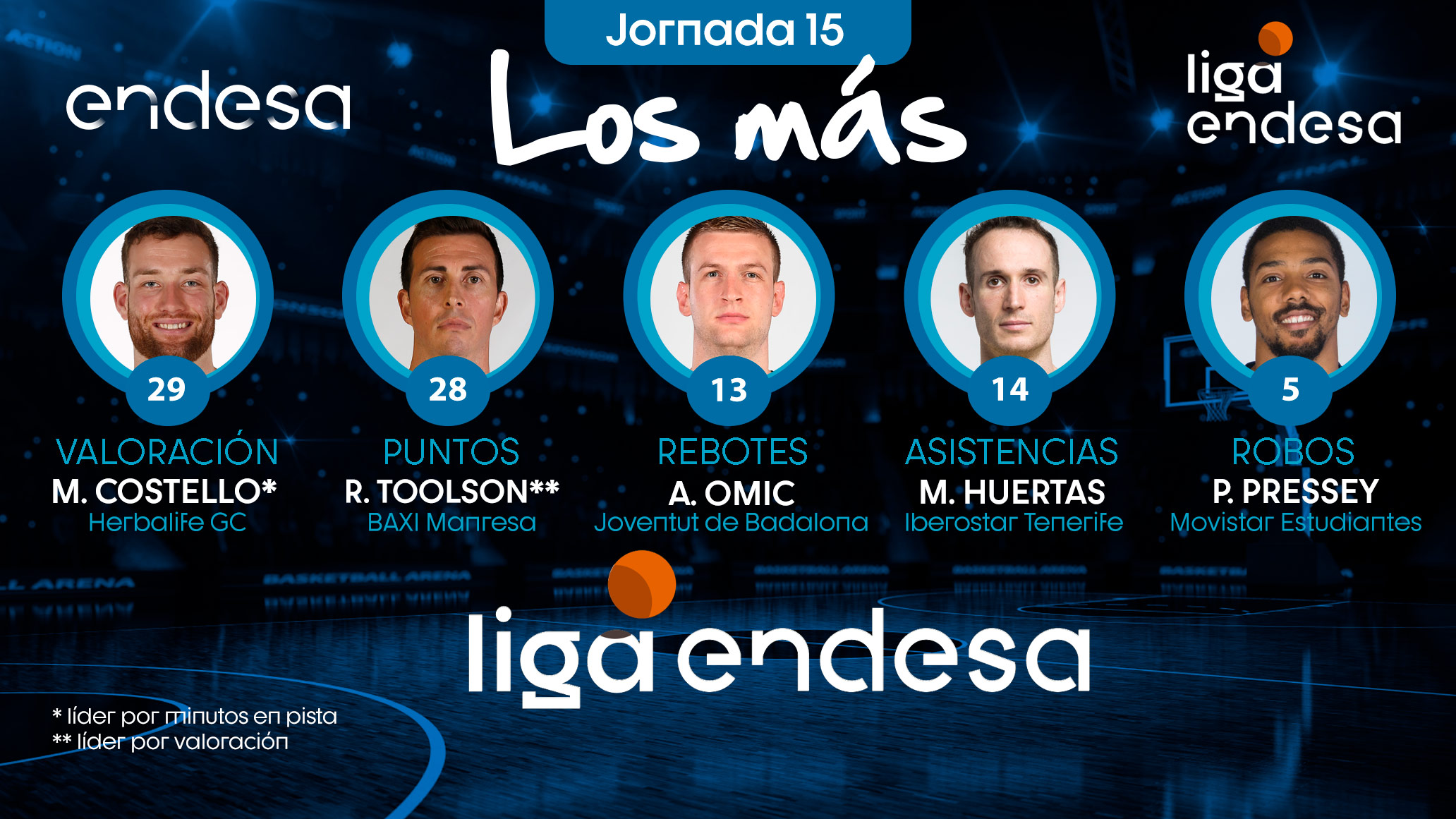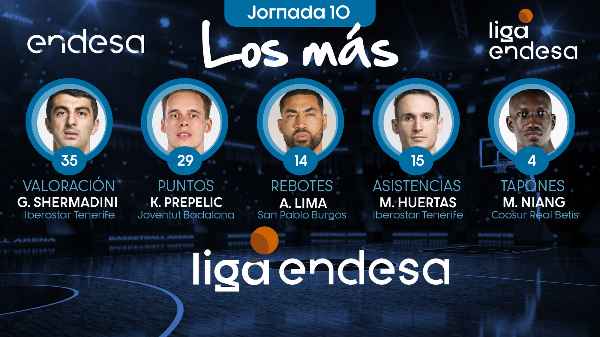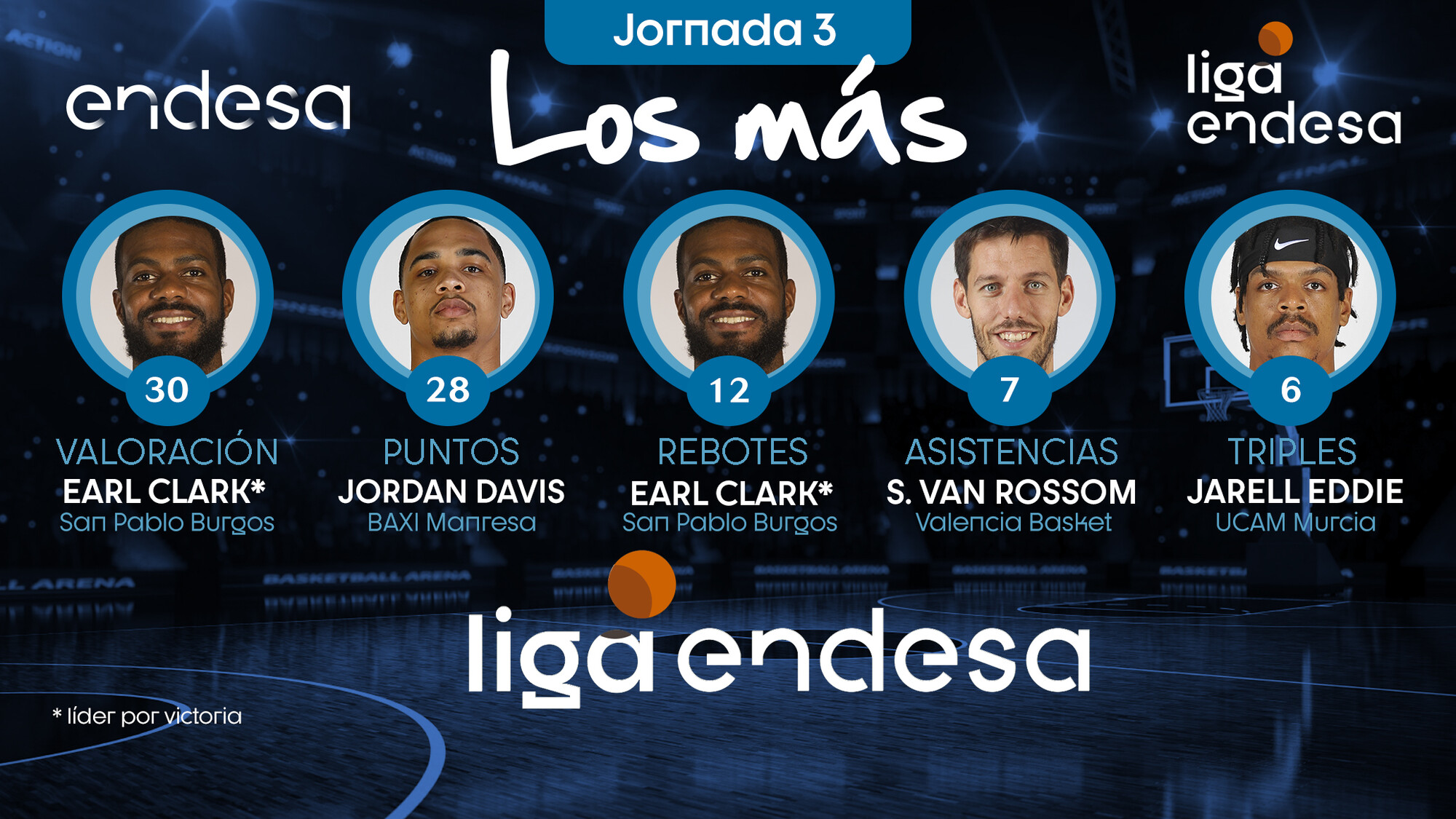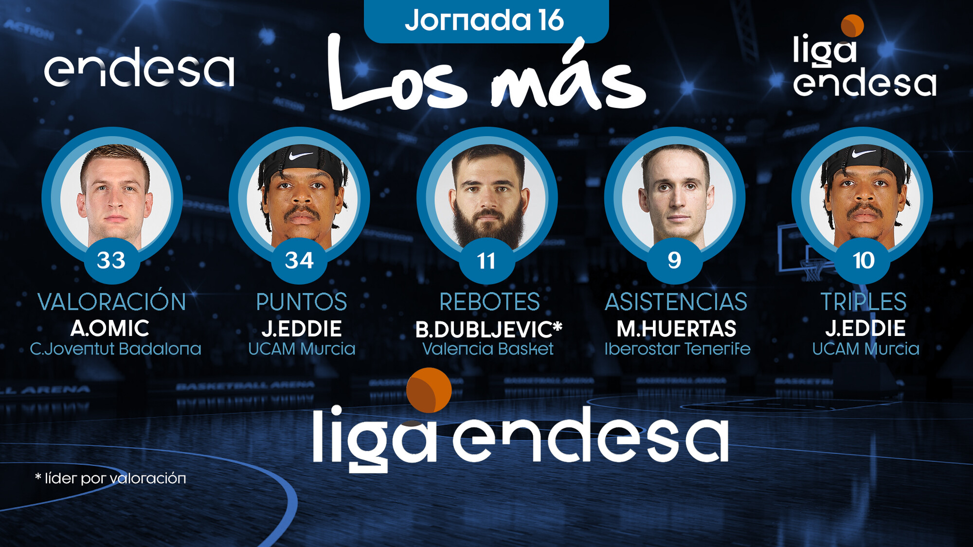 Repasamos, jornada a jornada, qué jugadores fueron "Los Más" en valoración, puntos, rebotes o asistencias, entre otros apartados estadísticos