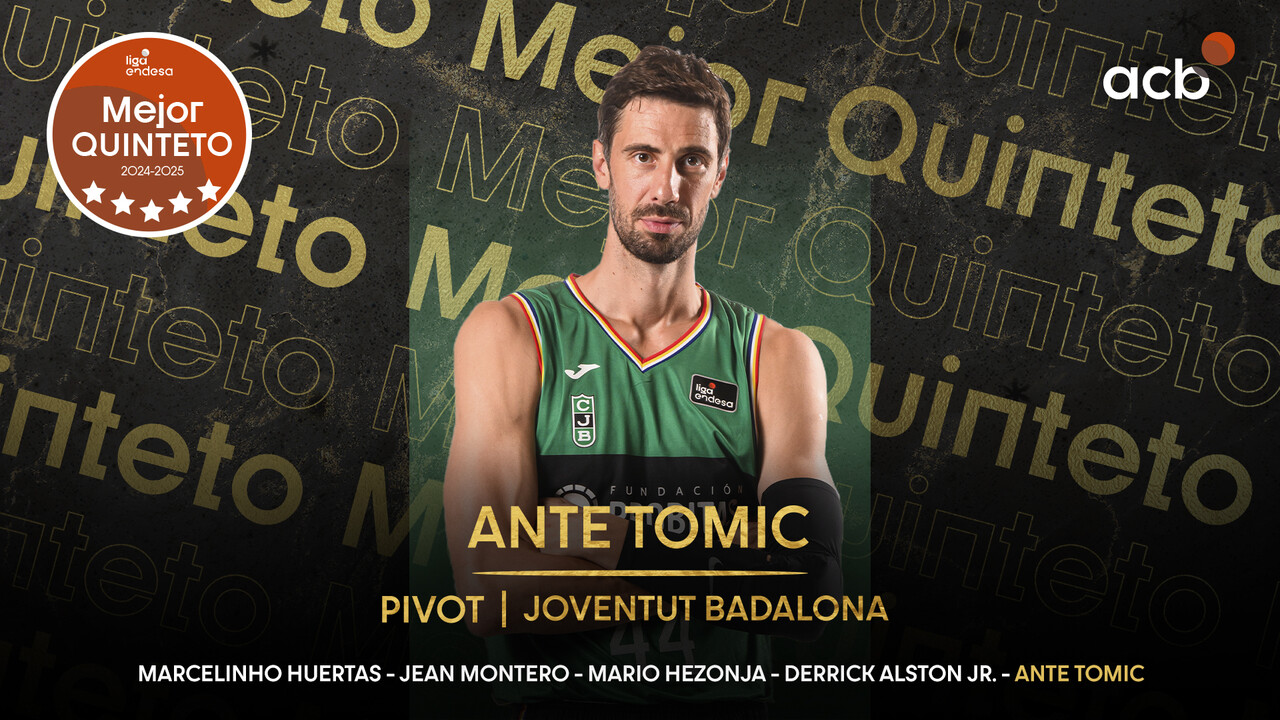 Cuando está viviendo una segunda juventud, Ante Tomic logra por tercera vez en su carrera ser uno de los integrantes del Mejor Quinteto de la Liga Endesa, tras haberlo logrado antes en las temporadas 2010-11 y 2012-13. El pívot croata ha ido sumando un hito tras otro a lo largo de los meses, lo que le ha llevado a ser el favorito de los aficionados en esta votación, logrando el máximo de puntos permitido (51). Es el jugador más valorado de la competición (20,9) y el segundo máximo reboteador (7,0).