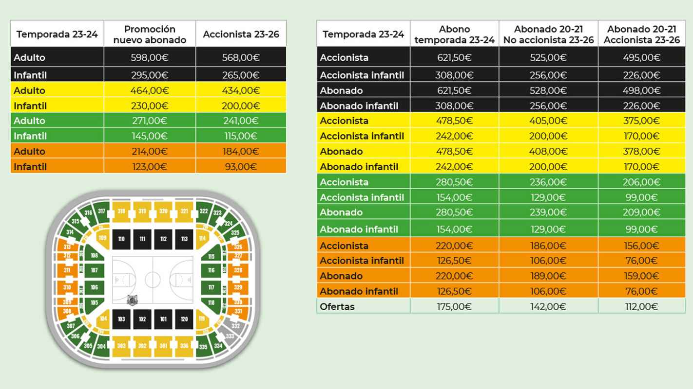 El abono de temporada 23/24 además de los 17 compromisos de Liga Endesa, recoge este año las dos rondas de grupos de FIBA Europe Cup, lo que momentáneamente garantiza 20 encuentros incluidos en el abono que podrán ser 23 si el equipo logra el pase a la segunda ronda de la competición.
