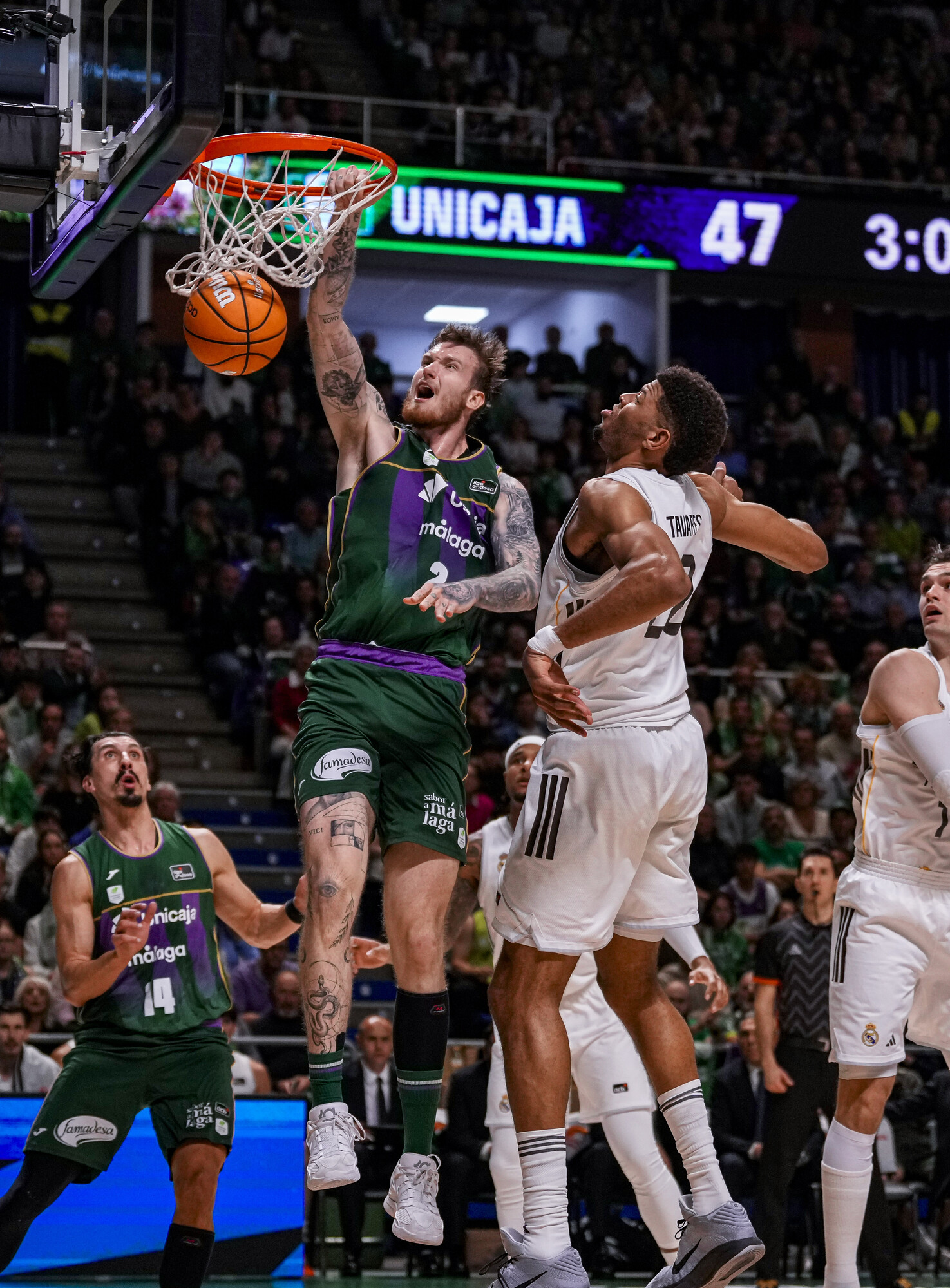 Los dos últimos campeones coperos se miden en cuartos en lo que será la redición de la pasada final. Los madridistas quieren venganza y mantener su racha 12 victorias consecutivas en cuartos de final. No será fácil, pues Unicaja ha ganado dos de las últimas tres ediciones y el balance general de sus cruces coperos está empatado (3-3). En liga regular hubo doble triunfo madridista con remontada en ambos encuentros. El más reciente, la pasada semana.