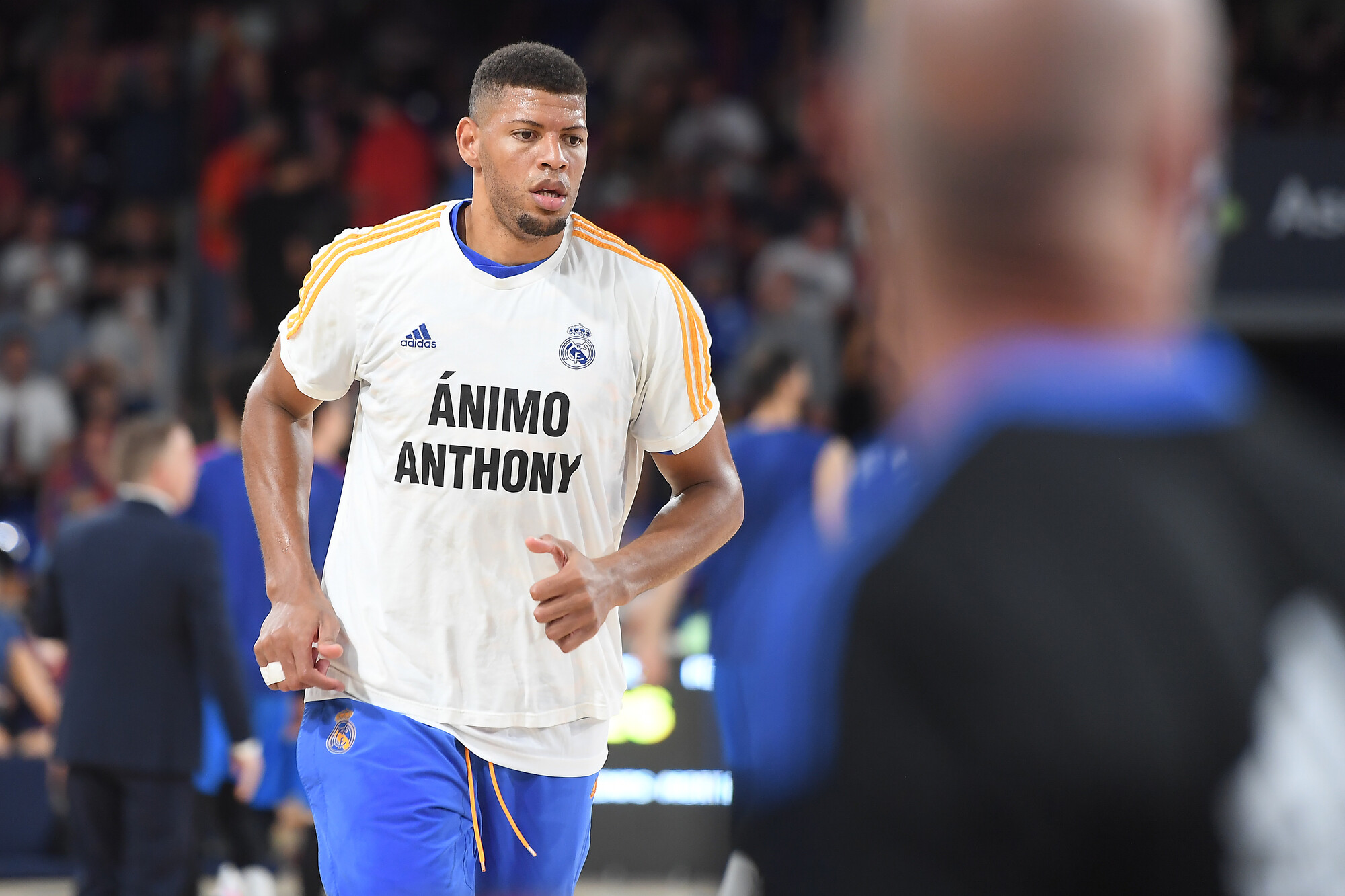 Antes del inicio, los jugadores del Real Madrid lucieron camisetas de apoyo a Anthony Randolph. El ala-pívot estadounidense se rompió el ligamento cruzado de la rodillo durante el primer encuentro de la final del Playoff de la Liga Endesa, el pasado lunes.