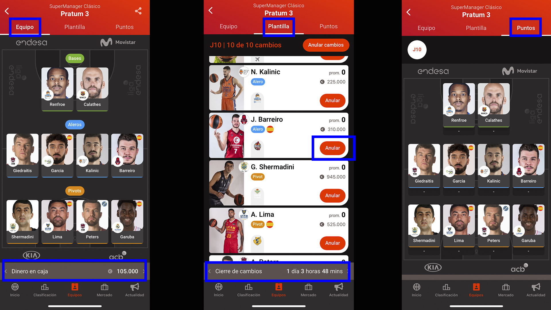 IMPORTANTE NOVEDAD: Para darte más flexibilidad durante la jornada, esta temporada podrás anular un fichaje y quedarte con la posición vacía, sin que ello implique recuperar al jugador que tenías originalmente (quien podría estar ya bloqueado). Basta con que el jugador fichado no haya comenzado su partido aún.