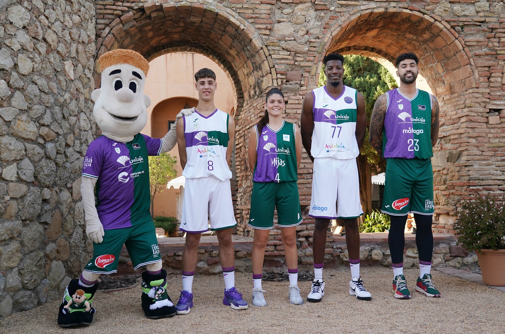 Unicaja Baloncesto y Joma han presentado un año más los nuevos diseños de sus equipaciones, representando la bandera de Málaga: mitad morada, mitad verde.