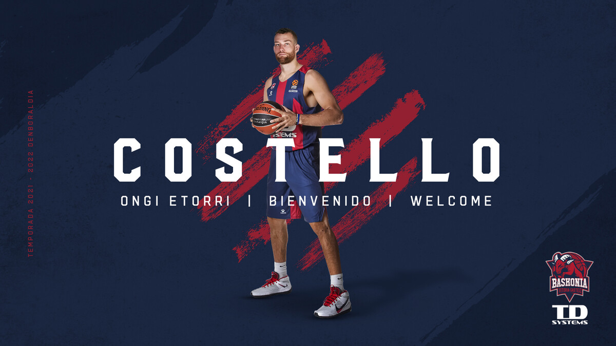 TD Systems Baskonia se ha hecho con los servicios del interior estadounidense Matt Costello con un acuerdo para las tres próximas campañas. Costello, nacido en Linwood -Michigan- el 5 de agosto de 1993, llega a la entidad del Zurbano tras militar las últimas dos campañas en el CB Gran Canaria, equipo con el que ha disputado las semifinales de la Eurocup este año.