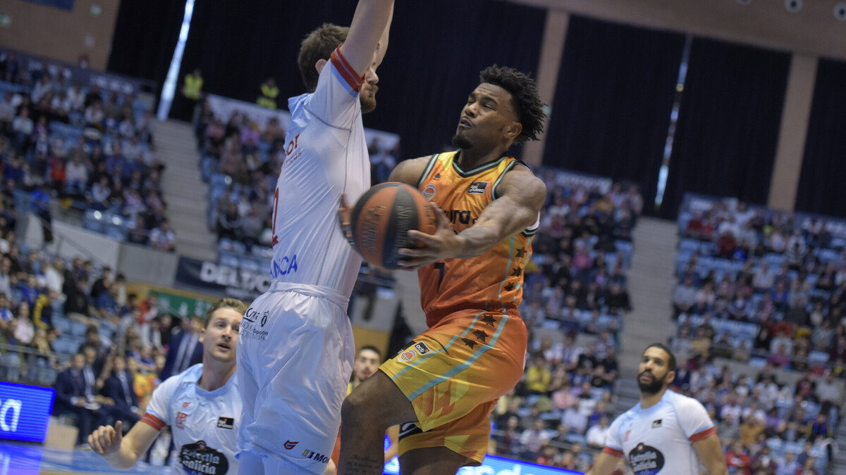 MOB 47-54 VBC (min.25). El Valencia Basket llegó a poner una renta máxima de +13, pero el Monbus Obradoiro se ha rehecho hasta (solo) +7. Sigue habiendo mucho por decidir en el Fontes do Sar. Imperial Chris Jones, base taronja, con ya 11 puntos y 5 asistencias.
