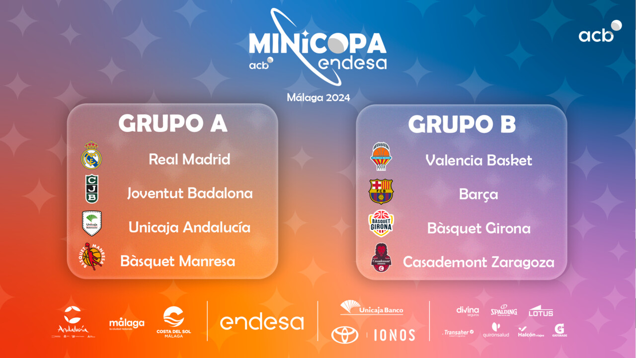 En el Grupo A quedaron encuadrados Real Madrid, Joventut Badalona, Unicaja Andalucía y Bàsquet Manresa, mientras que en el Grupo B se enfrentarán Valencia Basket, Barça, Bàsquet Girona y Casademont Zaragoza.