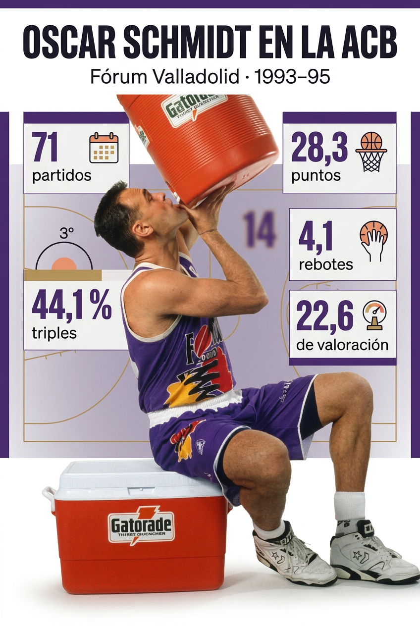 Once años atrás, justo antes de firmar por Caserta, Schmidt Bezerra estuvo muy cerca de comprometerse con el Cotonificio de Aíto García Reneses. En 1986, tras ser verdugo de España en el Mundial, el Real Madrid le propuso un jugoso contrato que ni inmutó a la escuadra italiana. "¿Qué es eso del Madrid? ¿Te dan tres temporadas? Pues yo te ofrezco cuatro". Y se quedó en Italia, con 1,1 millones de dólares a percibir y el contrato firmado por Mendoza enmarcado en su sala de trofeos. Los blancos lo volverían a intentar en el 90, pero 'Mano Santa' no se decidió por una propuesta española hasta tres años más tarde. Ni Aris, ni Trapani. El Fórum Valladolid como destino. El cuadro pucelano quiso compensar a su hinchada, huérfana por la marcha de Sabonis ("Yo pensé que jugaría allí con él, juntos lo hubiéramos ganado todo... aunque hubiéramos necesitado dos balones") y, tras probarlo en primer lugar con Audie Norris, se cansó de esperar, pagó su cláusula de salida y le ofreció medio millón de dólares al año. Trato cerrado. En su presentación, sin demasiado glamour en una oficina de viajes de la calle Iscar, Oscar dejó en ella una frase profética, cual aviso a navegantes: "Tengo 35 años, pero si dependiera de mí jugaría otros 10 más".
