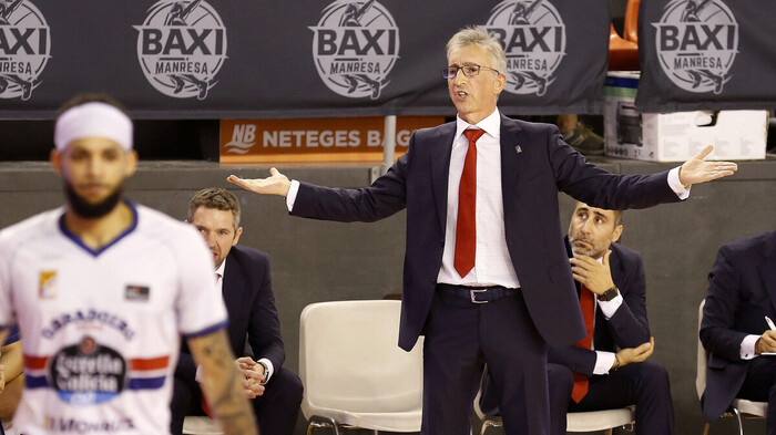 El técnico de Monbus Obradoiro felicitó a sus jugadores por el nivel de compromiso y la lucha en el triunfo obtenido en Manresa