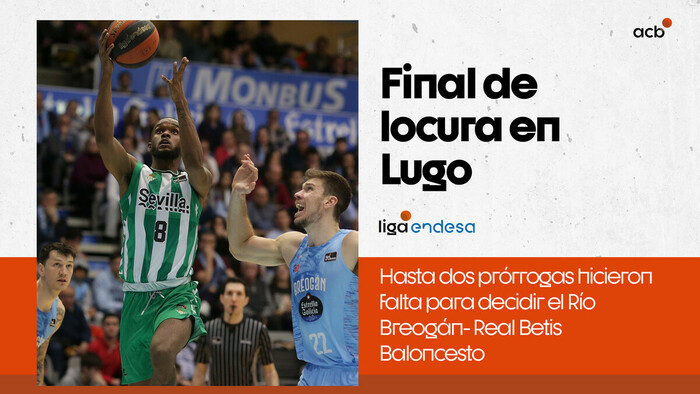 El Real Betis Baloncesto firmó su triunfo más heroico del curso en Lugo, venciendo al Río Breogán tras dos prórrogas (114-115), en el duelo con más puntos de la década. Montero (28 pt) y Johnson (22), brillantes