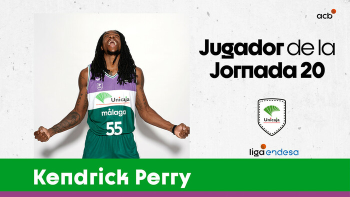 Una vez disputado el partido aplazado, se confirma la designación como Jugador de la Jornada de Kendrick Perry. Los 37 créditos de valoración logrados por el base del Unicaja le hacen merecedor de este reconocimiento