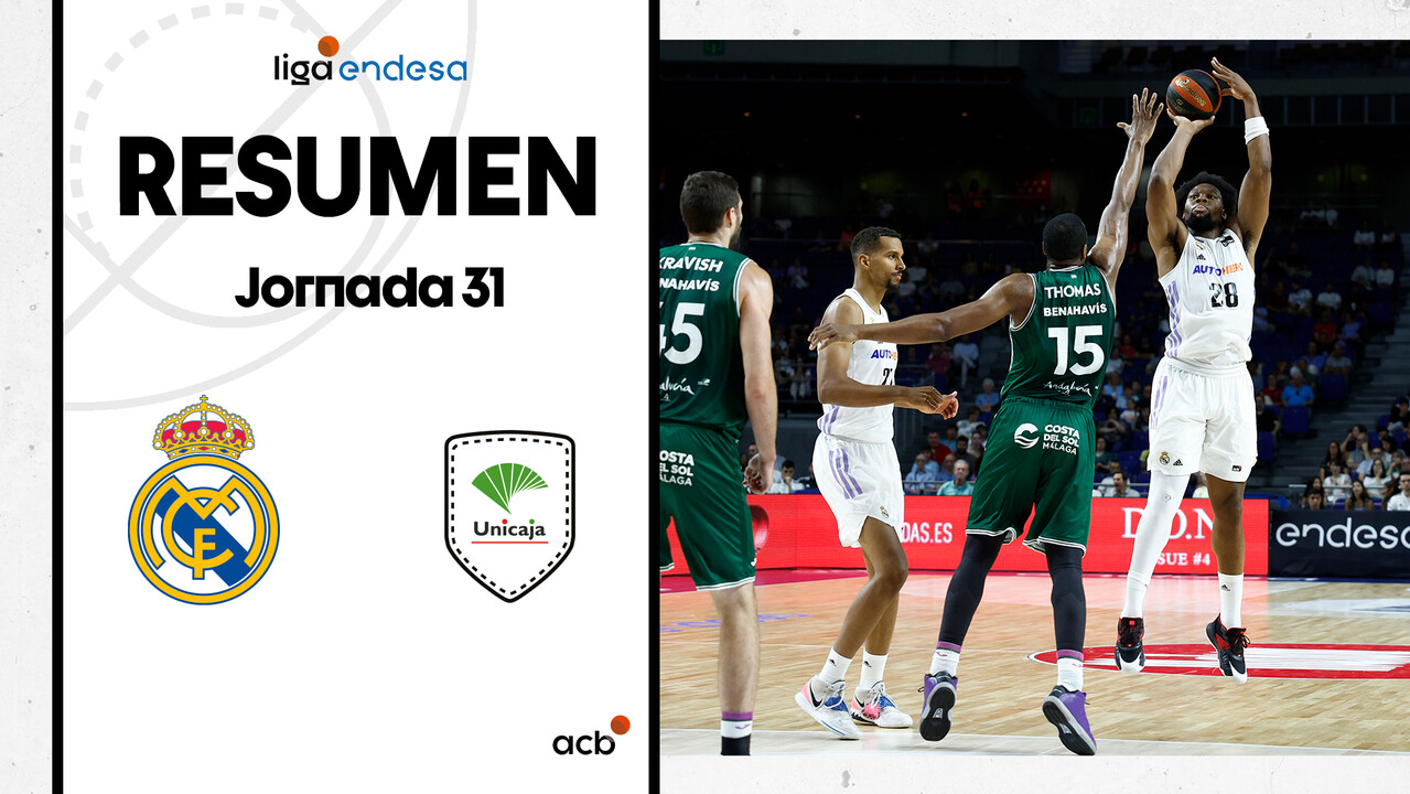 Tras su victoria frente al Unicaja, el Real Madrid asegura matemáticamente acabar la liga regular entre los cuatro primeros de la clasificación
