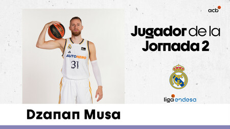 Tras sumar 31 créditos de valoración, Dzanan Musa logra la designación como Jugador de la Jornada 2. Sus 23 puntos, 7 rebotes y 4 asistencias le otorgan este reconocimiento por séptima vez en su carrera.