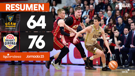 Segundo triunfo fuera de casa en el curso de un Bàsquet Girona que siempre mandó ante UCAM Murcia (64-76). Martinas Geben, referente de los visitantes, con 16 puntos, 9 rebotes y 25 de valoración